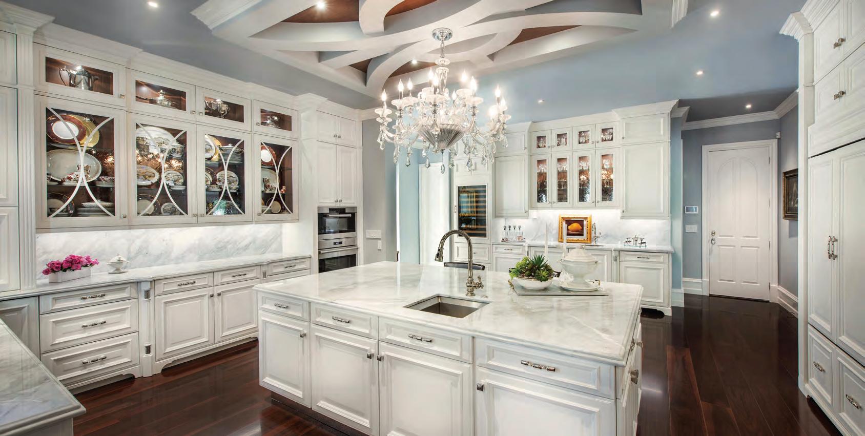 The five-bedroom, five-anda-half-bathroom home features a custom kitchen, Wolf appliances and a quartzite island with a water fall edge. An elevator and custom staircase both lead to a rooftop deck on the fourth level complete with a whirlpool.