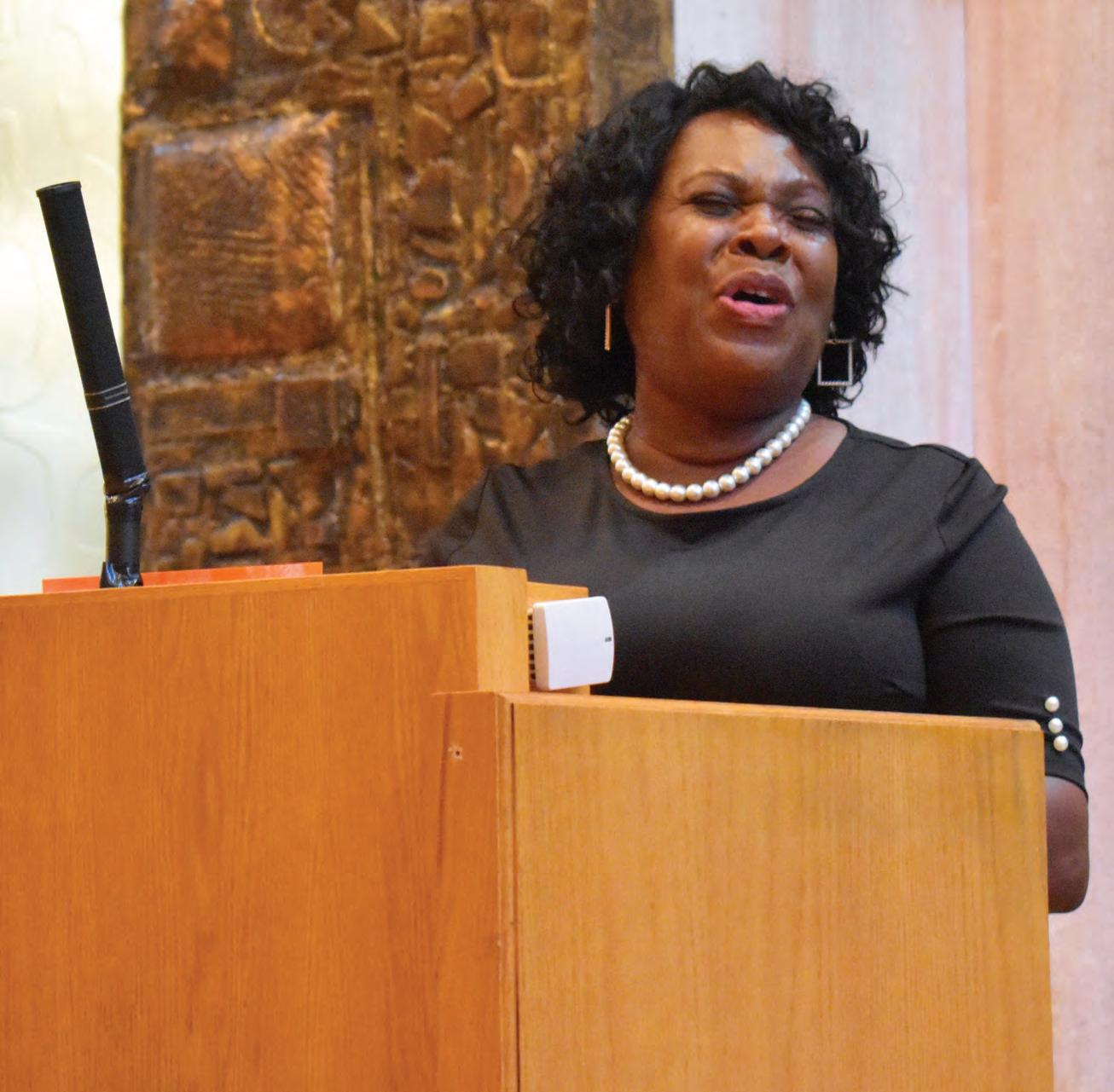 April Glasco sings a beautiful rendition of “God Has Smiled on Me’’ at Temple Beth Israel.