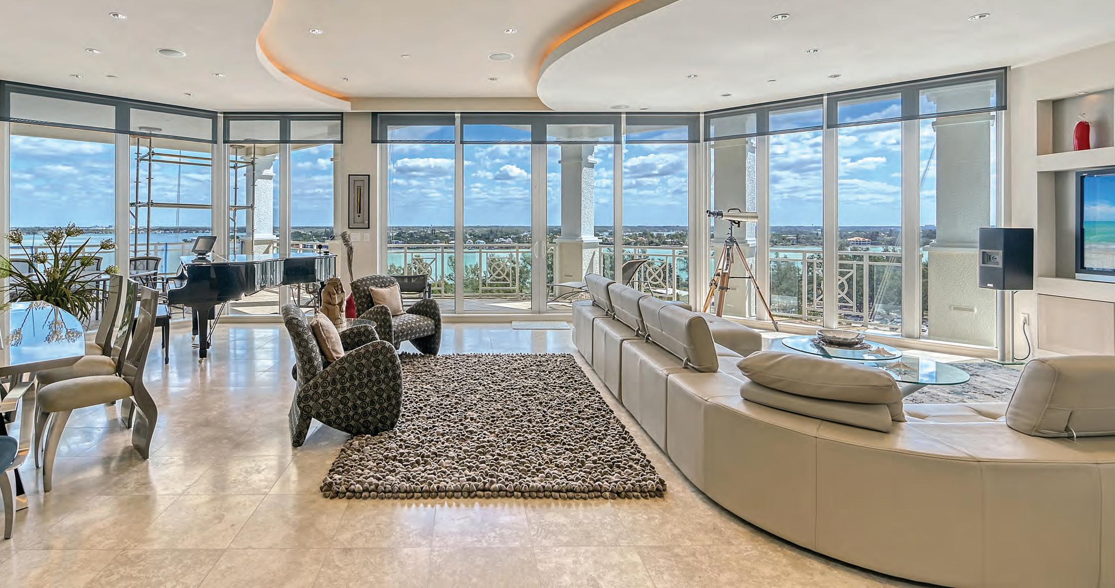 From almost any room in this direct bayfront, 3BR residence, you can look out to enjoy beautiful sunny views of Sarasota Bay that stretch out to downtown’s city skyline. Includes secure, deeded parking. www.MarinaBay142.com