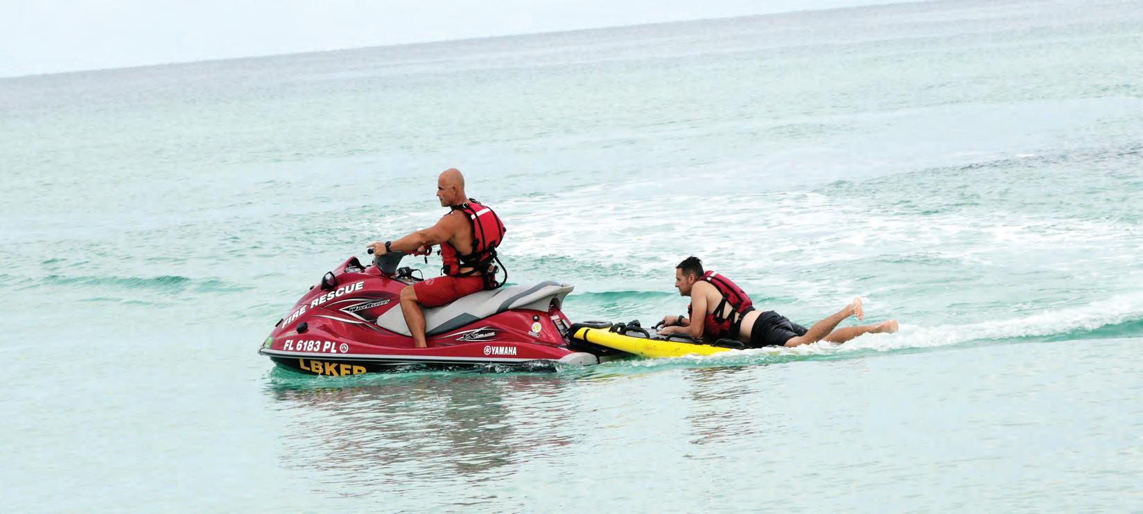 The Longboat Key Fire Rescue Department can deploy its personal watercraft, seen here during a training drill, in the event of a water rescue call.