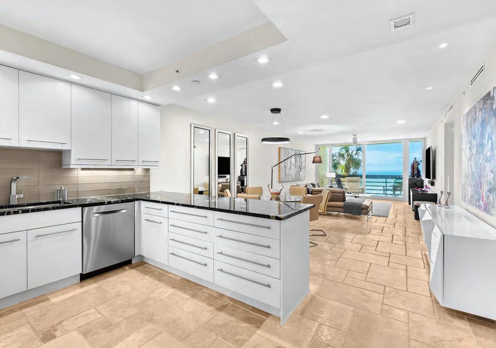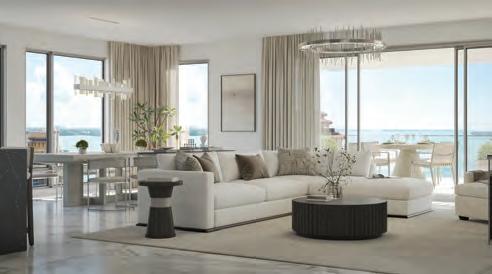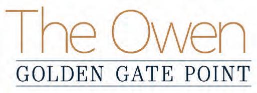 Each residence at The Owen Golden Gate Point will showcase a private elevator lobby, an entry foyer and spacious island kitchen, and a flowing great room and dining area that opens to a spacious covered balcony with glass railings and a built-in stainless-steel Artisan Professional Series grill with a hood. Expansive impactresistant doors and windows will bathe the living areas with abundant natural light. The kitchens will be equipped to satisfy even the most discriminating gourmet. Standard appliances will include a SubZero side-by-side panel ready