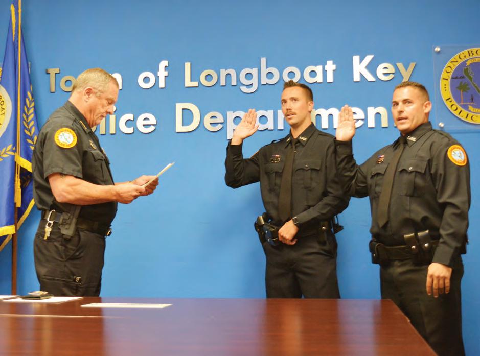 Two police officers, Adam Swinford and Mike Rizzo, started their Longboat Key Police Department careers this month. On Aug. 14, the two were officially sworn in.