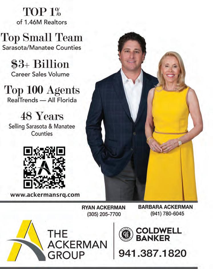 34 LONGBOAT OBSERVER | THURSDAY, APRIL 11, 2024 YourObserver.com 500 HARBOR POINT ROAD $8,900,000 This waterfront masterpiece, crafted by Murray Homes, epitomizes luxury living. Boasting 4BR+office and gym, with nearly 7,000 SF of meticulously updated interior and exterior, this private sanctuary features an oversized 4-car garage with golf simulator, plus a newly installed 30’ dock and 10,000-lb. lift (both added in 2022), ensuring seamless access to Sarasota Bay. www.500HarborPoint.com 455 LONGBOAT CLUB RD #305 Prepare to be captivated by Gulf and sunset views from this 3BR, direct beachfront Pierre residence. www.Pierre305.com $2,995,000 1901 MORRILL STREET Completely updated inside and out! This 7BR compound or rental is in Sarasota’s Historic District. www.1901Morrill.com $2,950,000 201 N. WASHINGTON DRIVE Ready for you to design your dream home, this parcel is in an ideal walkable St. Armands location. www.201NorthWashington.com $2,195,000 8052 GRANDE SHORES DRIVE Move right into this beautifully furnished (included), 4BR+loft lakefront, 2021-built home! www.8052GrandeShores.com $1,975,000 255 COSMOPOLITAN COURT Fall in love with moving right into this 2016-built, 3BR downtown townhouse with 2-car garage. www.255CosmopolitanCourt.com $1,499,000 3060 GRAND BAY BLVD #152 This bayfront 5th-floor Biscayne at Grand Bay offers 2,250 SF, and is ready for you to make your own. www.GrandBay152.com $1,495,000 743 ANNA HOPE LANE This sunny 3BR residence in Rivendell boasts a brand-new roof (2023), and newer A/C in 2021. www.743AnnaHope.com $629,000 4004 CASCINA WAY Crafted in 2017 by Taylor Morrison, this 3BR home, nestled on a corner parcel, awaits your personal touch. www.4004CascinaWay.com $899,000 MORE THAN $146 MILLION PENDING AND SOLD SINCE JANUARY 2024 6603 GULFSIDE ROAD $15,000,000 This a brand-new, direct Gulf-front masterpiece, set on over 1/4-acre and crafted by Vertical Design Build is still in the beginning stages so there is plenty of time to make your personal selections! www.6603GulfsideRoad.com 1325 WESTWAY DRIVE $13,995,000 Step into this tropical Lido Shores escape through the hidden courtyard that connects the 3BR main home to the private 2BR guest house, as the perfect introduction to a contemporary direct bayfront masterpiece. www.1325Westway.com 97 SOUTH WASHINGTON DRIVE $10,995,000 This home is a boater’s paradise offering many boating options! Situated on two lots in a corner location, spanning more than a 1/2-acre, this impressive and private 5BR residence is set along the deep waters of the bay. www.97SouthWashington.com 631 N. ORANGE AVENUE #107 Experience the essence of urban living in the vibrant Rosemary District at this 2BR renovated retreat. www.MentoneCourt107.com $375,000 1350 MAIN STREET #1701 Move right into this newer downtown penthouse in the heart of the city! Includes 2 parking spaces and storage. www.1350Main1701.com $2,349,000 CALL TODAY FOR YOUR EXCLUSIVE TOUR (941) 387-1840 443 John Ringling Boulevard, Suite F, Sarasota, FL 34236 | Pettingell.com | www.bestSarasotarealestate.net Twitter.com/RealRoger | Instagram.com/RogerPettingell | Roger@Pettingell.com The property information herein is derived from various sources that may include, but not be limited to, county records and the Multiple Listing Service, and it may include approximations. Although the information is believed to be accurate, it is not warranted and you should not rely upon it without personal verification. Affiliated real estate agents are independent contractor sales associates, not employees. ©2023 Coldwell Banker. All Rights Reserved. Coldwell Banker and the Coldwell Banker logo are trademarks of Coldwell Banker Real Estate LLC. The Coldwell Banker® System is comprised of company owned offices which are owned by a subsidiary of Anywhere Advisors LLC and franchised offices which are independently owned and operated. The Coldwell Banker System fully supports the principles of the Fair Housing Act and the Equal Opportunity Act. HUNTERS POINT 4305 MARINA VIEW WAY Move right in and begin enjoying an ideal, sustainable lifestyle at this beautiful 3BR waterfront residence. www.HuntersPointFL.com $1,700,000 4318 MARINA VIEW WAY Relish the convenience of brandnew construction at this stunning 3BR, sustainable, green residence. www.HuntersPointFL.com $1,250,000 4317 MARINA VIEW WAY The pinnacle of modern luxury living is found at this brand-new, 3BR, waterfront home. www.HuntersPointFL.com $1,550,000 7652 SANDERLING ROAD $8,995,000 This private estate is on over an acre of land with 172’ of beachfront, offering unobstructed Gulf views, designed to accentuate breathtaking beach and sunset views. www.7652Sanderling.com 5610 AVENIDA DEL MARE $6,600,000 Gorgeous updates and investment possibilities abound at this 7BR compound, located just a short sunny block from famed Siesta Key Beach! www.5610AvenidadelMare.com 6923 WESTCHESTER CIRCLE $4,695,000 This exquisite 5BR Arthur Rutenberg home is situated on nearly 1/2-acre of lakefront property. Offering nearly 7,000 SF inside, with luxurious finishes and contemporary upgrades. www.6923Westchester.com 7180 MANASOTA KEY ROAD This gorgeous, updated 4BR beach home, with its inspired Key West style architecture offers stunning Gulf views and a resort-style experience. www.7180ManasotaKey.com $3,795,000 601 LOTUS LANE Escape to paradise on Siesta Key at this 2017-built waterfront 3BR + office residence that exudes quality and style. Dock, lift, 3-car garage. www.601LotusLane.com $3,595,000 417304-1