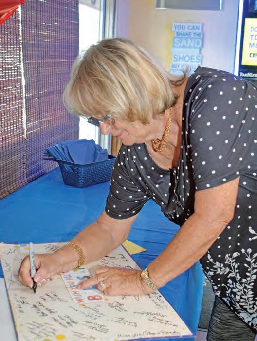 Christina Filkins signs Larry Bateman’s goodbye card.