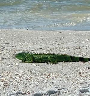 While enjoying the beach on Longboat Key, resident Terri Driver saw an unusual animal: a green iguana that she named Iggy.