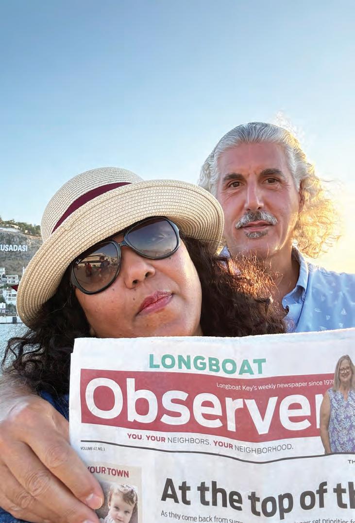 TURKISH DELIGHT: Medge and Michael Jaspan in Kusadasi, Turkey, with a copy of the Longboat Observer.