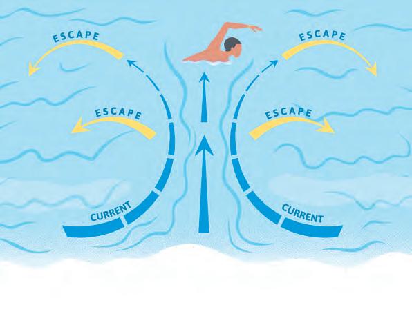 Instead, turn and swim parallel to the shoreline. Swimmers can either do that while they are being pulled out to break free from the current, or float with the current until they no longer feel the pull before swimming parallel to shore and then back to land.