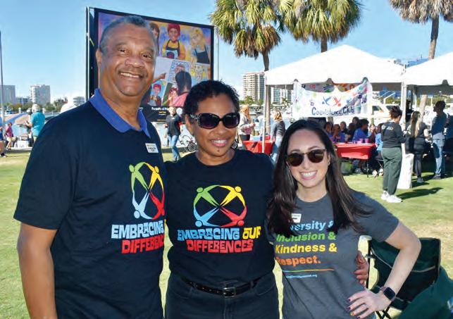Judge Charles E. Williams, chair of Embracing Our Differences’ board of directors, Linda Poteat-Brown, vice chair, and Sarah Wertheimer, president and CEO of the organization, pose together.