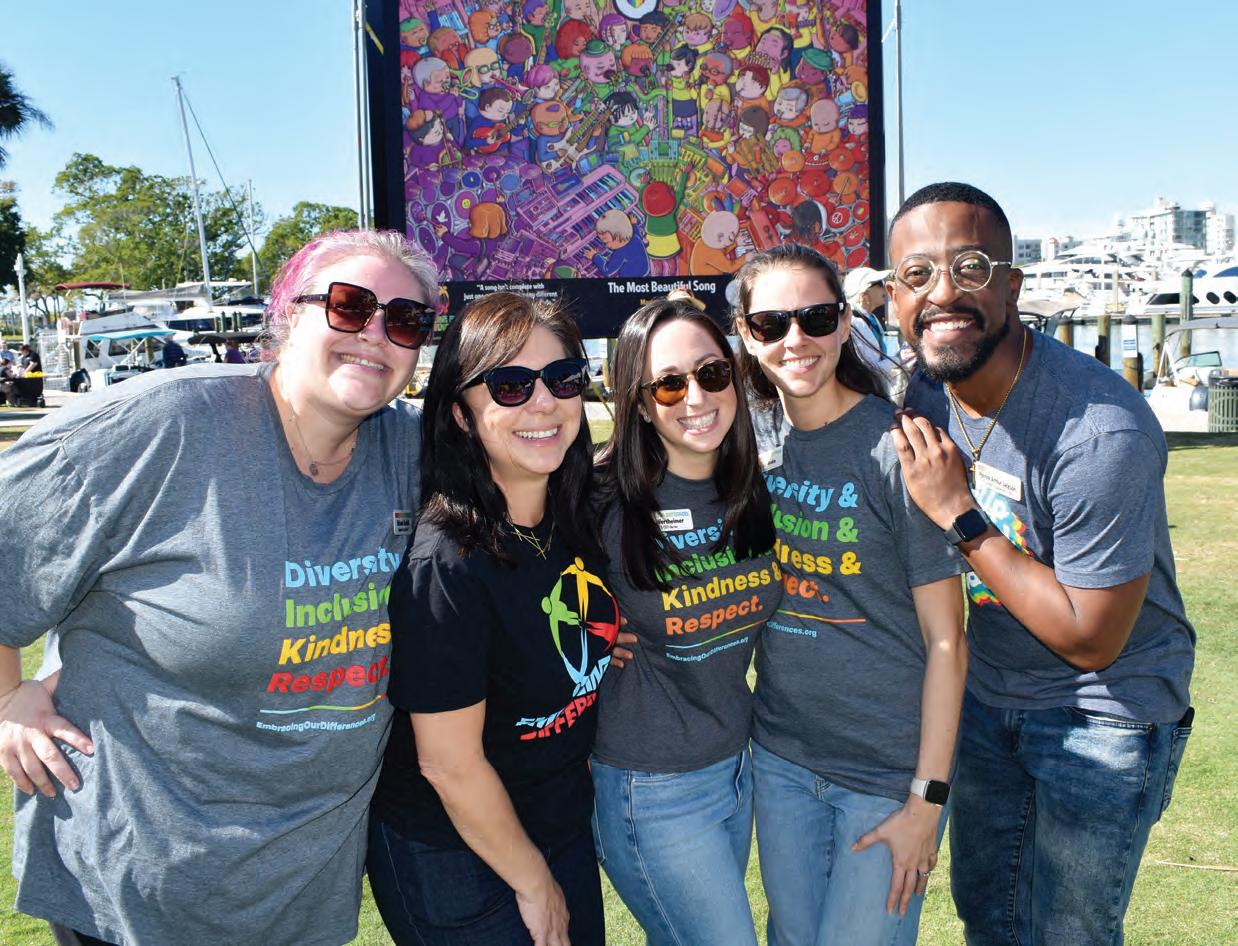 Embracing Our Differences staff Michaela Stockhill, Christina Fraser, President and CEO Sarah Wertheimer, Elizabeth Chicoine and Patrick Arthur Jackson celebrate the opening of the free, juried art exhibition in Bayfront Park. The exhibit, featuring 50 billboards of art, is on display through April 19.