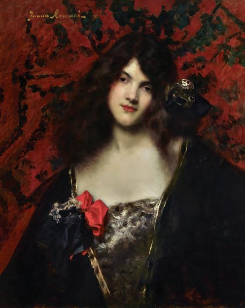 Juana Romani (Italian, 1869–1924), Femme au fond rouge, late 19th Century. Oil on panel. Museum Purchase, 2022. 2022.19