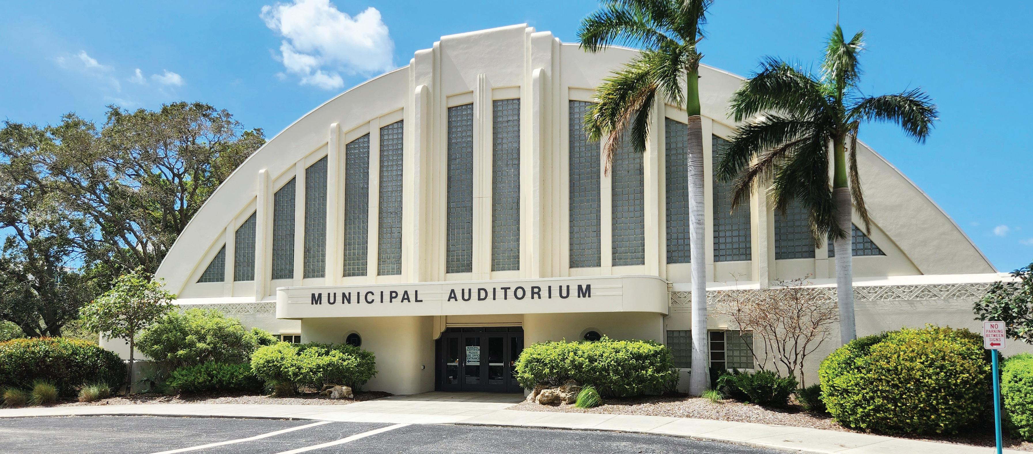 The Municipal Auditorium is cen tral to the Bay Park Conservancy’s master plan of The Bay, 53 acres of city-owned land on Sarasota Bay between Boulevard of the Arts and 10th Street, anchored by the Van Wezel Performance Hall.