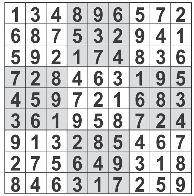 sudoku Complete the grid so that every row, column and 3x3 box contains every digit from 1 to 9 inclusively. ©2022 Andrews McMeel Syndicate crossword ©2022 Universal Uclick ACROSS 1 Real humdingers 8 Sauna stuff 13 Snapback feature 17 Seasonal purchase that counts down the days until Christmas 20 Actor Reeves 21 Antiestablishment move ment 22 Gets on an airplane 23 One might be in a cast 24 Research specialties 25 Automatic garage door device 27 “Les Miserables” star Hathaway 28 Melissa Joan ___ 30 Glass of public radio 31 Howard or Alcorn State, e.g. (Abbr.) 32 Middle Eastern country home to the world’s oldest dam 34 What opens doors for journalists? 37 Aries symbol 38 Discontinue, like a show 39 The ___ Piper of Hamelin 40 Arroz con ___ (rice pudding) 41 Triage places (Abbr.) 42 Indian state known for tea and silk 43 Woody frames? 44 Word after “floppy” or “compact” 45 Primatologists’ subjects 47 Extend across 48 Common dog biscuit shape 49 Ruby, e.g. 50 Worked (up) 52 Mint Mobile and TMobile 54 Stop motion game? 56 Poet’s “before” 57 Hockey Hall of Famer Willie 58 “That’s a ___ to process” 59 “Ooh, ooh, let me!” 60 Fuel additive brand 63 “That’s fantastic to hear!” 65 Mariner’s guiding light 67 Donut-shaped cake type 68 Subj. for some aspiring polyglots 69 Nimble for one’s age 70 Makeshift swing 71 Malek of “Bohemian Rhapsody” 72 “Kisses, my love!” 74 Not off the chain? 75 In high spirits 76 “So cool, dude!” 77 “Awesome, great to hear” 79 Wild pig 80 Maritime forces 81 Programmer Lovelace 82 Mischievous sprite 84 “That’s too nice!” 85 Bartenders and detec tives appreciate them 87 GI fare 88 Diatribe 89 Largest continent 90 Thoroughly 93 Like Jupiter and Neptune 95 Ankle’s place 98 Archaeologists dig them 99 “Thanks so much for the help” 102 “Things ___ as they seem” 103 Whirling “Looney Toons” character 104 Blast from the ___ 105 Judges to be 106 High-minded individu als? DOWN 1 Policy for “Dreamers” (Abbr.) 2 A durian has a pungent one 3 Egg cell 4 ___ garden (meditation spot) 5 As a team 6 Undying 7 Cellphone surface 8 Stack of unsolicited manuscripts 9 Business card no. 10 Walked into 11 Many are still kids at heart 12 Colt’s mom 13 Seashore 14 Unusual specimen 15 Certain speedway racers 16 Places where the past can be present? 18 Inits. aptly found in “Obamacare” 19 Some family secrets 20 Pond carp 22 Aggressively bold 26 Performance history 27 Esoteric 29 Final boss in the video game “God of War” 32 Artist Johns 33 Like bargain bin items 35 Snail’s trail 36 Ship’s navigational route 38 “___: The Origins of Our Discontents” (2020 bestseller) 39 Gift for a calligrapher 43 “You wanna fight?!” 44 Specifics, in slang 46 Mastermind piece 48 In search of stimulation 49 Sound from an empty stomach 51 Country that’s the world’s second-largest producer of olive oil 53 ___ game hen 54 Crayola color renamed Peach 55 Sleeping bag fastener 60 Add while cooking 61 Did some road repair work 62 Hunts for food 63 Chew on this! 64 “That’s pretty cool!” 66 Plant-based sweetener 67 No-goodniks 69 Standardized test conveniences 71 Period before television 73 “Yeah, yeah, the joke’s on us” 74 Parking meter insert 75 Getting by 76 Rodent catcher 78 Developmental sites? 79 “It’s all my fault” 80 Hardly a perfect person 83 Wander the web 84 Lively Carnival dances 86 Stretch at work? 91 Bat Appreciation month (Abbr.) 92 Mario Kart character with a mushroomlike head 94 “Yes, monsieur” 95 “SNL” segment? 96 Qatar ruler 97 Meshes well 100 West African staple crop 101 Yellow Monopoly bill JUMBO FREESTYLE 4 by Adrian Johnson. Edited by Amanda Rafkin By Luis Campos Celebrity Cipher cryptograms are created from quotations by famous people, past and present. Each letter in the cipher stands for another. “BNX’F ENZLJF FOJ JYZFO’R YTNSF EVHJ FONSRYXB WVKKVNX UJYZR NKB, YF KJYRF. GON AYX YEENZB FN KVHJ VX FOJ DYRF?” OYZNKB DVXFJZ “P’T XPDS UH BXEV E NHCJS, OEAV BSHBXS UNPAD P EXCSETV NEIS. SPUNSC SAT HW UNS NHCJS YHFXT ZS WPAS.” ZCPUPJN EMUCSJJ TEYA WCSAMN “HNHGB RPYSZH EUPE XHEM ZTE TY EUH SPGJ GVVD DWME OHHZ P ZTEEZH GHKHRETVY OGVD EUH SPGJYHMM PGVWYS TE.” JTGJ RPDHGVY © 2022 NEA, Inc. PuzzleOneClue:EequalsF PuzzleTwoClue:FequalsU PuzzleThreeClue:NequalsV 389473-1 MANASOTA FLOORING INC