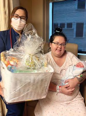 The mother-baby nursing team at SMH-Sarasota presented Julie with a special New Year’s baby basket filled with gifts for Kaiden and the family.