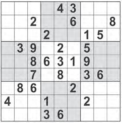 24 SARASOTA OBSERVER | THURSDAY, JANUARY 5, 2023 YourObserver.com 1-5-23 celebrity cipher sudoku Complete the grid so that every row, column and 3x3 box contains every digit from 1 to 9 inclusively. ©2023 Andrews McMeel Syndicate crossword ©2023 Universal Uclick ACROSS 1 Like a scathing review 4 Go downhill, say? 7 Ancient foe of Athens 13 Pinnacles 18 Smooth (out) 20 Spread everywhere 22 Old-timey contraction 23 *Secretary of state’s counterpart (twins) 25 Giant presence in China? 26 Helm a ship 27 Quaker products 28 Cut (off) 30 Feng ___ 31 Sprints 33 *Reverses course (bull) 37 Knife in horror movies 41 Chicago mayor Lightfoot 42 Hall-of-Fame pitcher Satchel 43 *What the LiMu Emu and GEICO Gecko promote (crab) 48 Seals, as a box 49 Asks for ID 50 Expert 51 Apiece 55 Madre’s sister 56 Own (up) 57 Debonair 59 Bambi’s mom, e.g. 60 Escargot 63 *Conveyances in “Up” and “The Wizard of Oz” (scales) 68 Clueless gamer 70 Covert ___ 71 Brown on a grill 72 *When certain dinosaurs roamed (fish) 79 Paint layers 82 Savings plan, for short 83 Surgical souvenirs 84 Absurd, at Oxford 86 Letter before sigma 88 Dog irritant 90 Notable period 91 Bakery’s lure 93 Admission after fibbing 95 *Marketer’s claim of high demand (ram) 100 Clog-busting product 102 Uttered 103 They may devour s’mores 104 *Renowned Mexican muralist (maiden) 107 Daniel of the frontier 109 Sitarist Shankar 110 Clean Air Act org. 111 “I’ve ___ Working on the Railroad” 112 2:1, e.g. 117 Still kicking 119 Indications of disrepair, or the zodiacal scrambles in the starred clues’ answers? 124 Relocates 125 Coming to a stop 126 Adjusts again, as a manuscript 127 Hollywood dealmaker 128 Shakes one’s behind 129 “Ice Age” sloth 130 ___ Fighters (“Everlong” band) DOWN 1 Close buds on a text thread 2 So, so much 3 Challenge 4 Coffee shop sticks 5 Brewery barrel 6 It’s presumed in court 7 BBQ rods 8 They may click in the classroom 9 Name in “Costa Rica” 10 Houses on wheels, familiarly 11 Bit of ink 12 “Easy on Me” singer 13 Nile reptile 14 Reprimand 15 Bro’s greeting 16 Stay the course 17 Discoloration on a dress 19 Shirt from a concert 21 Cupid’s counterpart 24 Astronaut Jemison 29 Spanish for “daddy” 32 ___ glance 33 Ranch calls 34 Pitcher’s asset 35 Yom ___ (Jewish holiday) 36 Dubai’s land, briefly 37 It catches curves 38 Nin on a bookshelf 39 Channel for politicos 40 Tinge 41 Type of TV 44 ATM offering 45 Jyn ___ (“Rogue One” protagonist) 46 Omani or Kuwaiti 47 Explosions far, far away 52 Brouhaha 53 Swindle 54 “For ___ a jolly ...” 56 Freebie at a dentist’s office 57 Oui, oui : French :: ___ : Spanish 58 Vote into office 61 Actress de Armas 62 Apple’s mobile platform 64 Pedicure digits 65 Earth Day mo. 66 Language related to Thai 67 Pop star Rita 69 Muscle to curl, informally 72 Skippy competitor 73 Virtual address 74 Issa of “Insecure” 75 Astronomer Sagan 76 Laud 77 Major stink? 78 Title for Helen Mirren 80 Banal 81 Like a thin dress 85 Trainers of a certain bird of prey 87 Bookmaker’s postings 89 How a fact can be taken 91 Where orangutans are found 92 “Cool!” 93 Submerged 94 Sass 96 Game with a colorful deck 97 Skin opening 98 Musician’s gift 99 Bond novelist Fleming 100 ___ box (computer window) 101 Bring back to life 104 TV genre for “Succession” 105 Wall St. launches 106 Gymnastics leap 107 Hazards in cold waters 108 Wordsmith’s lexicon (Abbr.) 111 Hit on the head 113 Lend a hand to 114Exclamation before the weekend 115Enamored of 116 ___ buco 118 Winter setting in NYC 120 Ride for a broken-down ride 121 Must pay 122 It’s lit up at Christmas 123 Place to buy outdoor gear