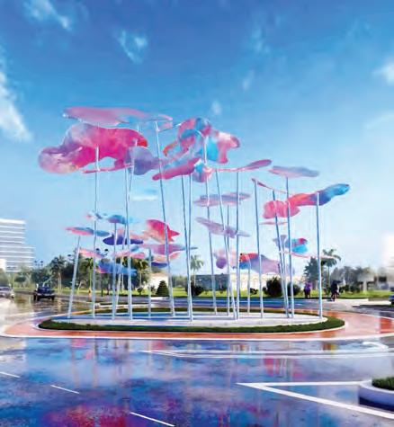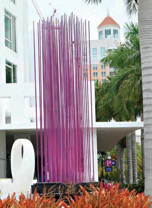 Surrounded by luxury condominium and hotel towers, the Fruitville Road roundabout is a focal point downtown, and the selected sculpture will be nestled amid a backdrop of mostly white architecture. The proposals by Sheng and Reigelman offer colorful glass and metallic contrasts against that canvas, while Lim’s concept blends in, taking advantage of internal lighting at night to stand out.