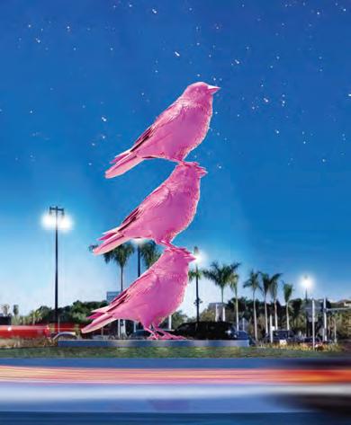 Reigelman’s Snowbirds is three dark-eyed junco birds balancing atop each other, paying homage to both the city’s circus legacy and its seasonal population migration. Although the concept shows the birds as pink, Reigelman said he is flexible on the color.