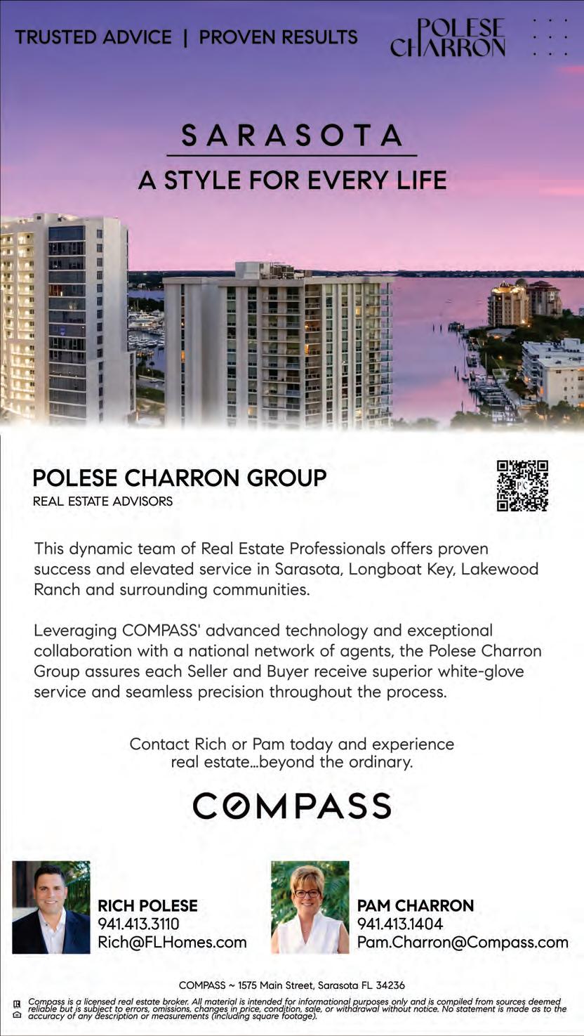 34 SARASOTA OBSERVER | THURSDAY, SEPTEMBER 14, 2023 YourObserver.com 405624-1 Sotheby’s International Realty® and the Sotheby’s International Realty logo are registered service marks used with permission. Each office is independently owned and operated. Equal Housing Opportunity. Property information herein is derived from various sources, including, but not limited to, county records and multiple listing services, and may include approximations. All information is deemed accurate. With expert market knowledge and unparalleled team resources, we can provide the highest level of service throughout the buying and selling process for customers on the barrier islands, mainland neighborhoods, and in the area’s golf course and master-planned communities, including Lakewood Ranch and Palmer Ranch. CONTACT US TODAY! 3799 FLAMINGO AVENUE SIESTA KEY 7707 CALLE FACIL PRESTANCIA 423 SOUTH POLK DRIVE LIDO KEY 128 GOLDEN GATE POINT #601B VISTA BAY POINT 4634 MIRADA WAY #13 PRESTANCIA $22,000,000 $2,750,000 OPEN HOUSE SUNDAY 9/17 | 1 – 4 P.M. $1,050,000 $5,895,000 JUST LISTED $379,000 LUXURY REAL ESTATE DEFINED SCHEMMELSODAGROUP.COM Joel Schemmel, J.D., REALTOR ® Joel.Schemmel@PremierSIR.com 941.587.4894 To find out more about our recordbreaking luxury sales and how we can work for you, scan the QR code. OVER $132 MILLIO N SOLD AND PENDING IN 2023 OVER $199 MILLIO N SOLD AND PENDING IN 2022 NO. 1 SMALL TEAM by sales volume in Sarasota and Manatee counties NO. 15 Small team by sales volume in Florida