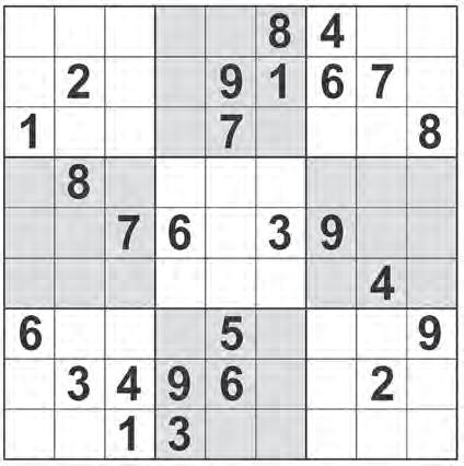 the grid so that every row, column and 3x3 box contains every digit from 1 to 9 inclusively. ©2023 Andrews McMeel Syndicate crossword ©2023 Universal Uclick ACROSS 1 ESPN replay speed 6 Jeans maker Strauss 10 Lego people, to collectors 18 Fill the tank 19 “___ go bragh!” 20 Paragons of things aging well 21 Shell decoration? 22 “What a miserable day of repairs! I tried to install new panes but accidentally ___” 24 Disreputable papers 25 “Uh-uh!” 27 Tilling tool 28 Some tennis surfaces 29 “Frustrated, I lashed out and ___” 35 We got this! 36 Home screen filler 37 Paddles 38 Upsilon follower 41 Neighbor of Namibia 44 “What’s Rita ___ Up To?” (segment on the “Who? Weekly” podcast) 45 Busy mo. for a CPA 46 Kitchen bulb 48 “Then, as I gathered my fasteners, I tripped on the stairs and ___” 53 Teen’s bane 54 Permitting agcy. 55 Sow’s counterpart 56 Cherry and burgundy 57 Parish leader 59 Tourney placement 61 Snappy dresser 63 “___ the season” 64 Nickname of baseball’s Frank Thomas, with “the” 65 “I carried on at the entryway, but I slipped and ___” 70 “___ Jones” (1970s TV series) 72 Political fundraising grp. 73 “There Will Be Blood” resource 74 Blood components 77 Raise interest rates? 78 Bicep exercise 79 Unappetizing mass 82 Morning moisture 83 Salacious stuff 84 “Trying to keep my balance, I grabbed on to the decorative front but ___” 89 Pick up 91 Android competitor 92 ICU hookups 93 Cold, creamy treats, informally 94 Puzzling 95 Circle 97 Legwork 99 Rose’s stalk 100 “When I climbed to the top of the house to survey the damage, I fell and ___” 106 Amount at risk 108 Puppy’s bark 109 Check out 110 Miles away 111 “I clung onto the eaves for a while, but in the end I ___” 116 Petrifying figure? 118 Old Hollywood technique to make hair look silver 119 Taking an extra quarter, say (Abbr.) 120 Scores 100 on a test 121 Bestrides 122 Collars 123 Models DOWN 1 “Honey” relative 2 “Hands off!” 3 Pioneering hip-hop style of the early 1980s 4 Very, in Veracruz 5 Goal of some international pacts 6 Dulce de ___ 7 Go wrong 8 By way of 9 Creep forward 10 Mediocre, to Gen Z 11 ___ pickle 12 “The Price Is Right” prize 13 Defiant declaration 14 Not up for discussion 15 Annual May auto race, informally 16 Bygone GM compacts 17 Opposite of NNE 18 Disney’s “Phineas and ___” 20 Three in a yard 23 Designer Michael 26 Sounds of realization 30 Mathematician Leonhard who popularized using pi to represent 3.14159 ... 31 Subway charge 32 Milky gem 33 Southwest tribe 34 Caution 38 Cheesy event? 39 “Scout’s ___!” 40 Like noble gases 41 &&& 42 You might put a face to one 43 Concede some 44 “Darn it!” 45 Kicks in 47 Tex-Mex snacks 49 Chewy boardwalk treat 50 Noun preceder 51 German refusal 52 Crossword layout, for one 58 Modern type of surfing 60 Circular spins in a car 62 Some temporary shops 64 Focal point of some balls 66 Prof’s helpers 67 Not yet up 68 Big cover-up? 69 Acmes 70 Low voice 71 “Miss Congeniality 2: ___ and Fabulous” (2005 movie) 75 Take from the top 76 Wows 78 Take over 80 Incredibly distant 81 “Gay” city in a Cole Porter song 85 Real hoot 86 “Mon ___!” 87 Common sitcom rating 88 Greeting at a communist mixer 90 Marvel assassin whose name derives from Greek myth 96 Like some musical “wonders” 97 Uptight sort 98 Sneakily recruit 99 Dump 100 Rouses 101 ___ Park (London landmark) 102 Schleps 103 Serving a purpose 104 Haven 105 Campus group 106 Arias, generally 107 Talk up 111 “Miracle Workers” network 112 Musician Brian 113 Psychic’s supposed gift (Abbr.) 114 ___ shoestring 115 Keyless key 117 Prefix with “tourism”