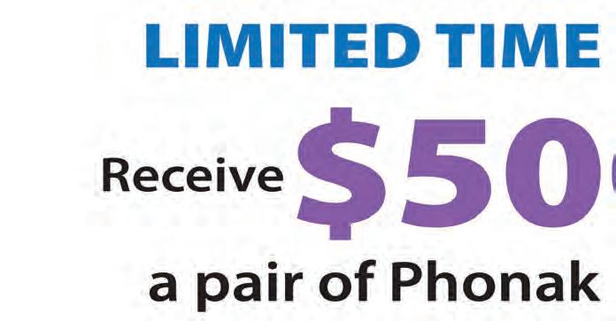 SARASOTA OBSERVER | THURSDAY, MAY 30, 2024 27 YourObserver.com Reprogram your current hearing aids with your new hearing prescription and up-to-date software improvements at no charge. FREE HEARING AID CHECK UP It is important to have your hearing checked at least once a year. FREE HEARING EXAM & CONSULTATION! NO OBLIGATION! Our Video Otoscope can detect if ear wax may be the reason you are experiencing hearing difficulty. FREE VIDEO EAR SCAN MAKES SURE IT’S NOT EAR WAX 5-DAY SPECIAL EVENT WE ALWAYS PROVIDE THESE SERVICES FREE! ABSOLUTELY FREE NO COST, NO OBLIGATION Reprogram your current hearing aids with your new hearing prescription and up-to-date software improvements at no charge. FREE HEARING AID CHECK UP It is important to have your hearing checked at least once a year. FREE HEARING EXAM & CONSULTATION! NO OBLIGATION! Our Video Otoscope can detect if ear wax may be the reason you are experiencing hearing difficulty. FREE VIDEO EAR SCAN MAKES SURE IT’S NOT EAR WAX 100% Digital Open-Fit BTE (Open Fit Behind-the-Ear) WAS $795 NOW $395 100% Digital ITE (In-the-Ear) WAS $995 NOW $395 100% Digital CIC (Completely -in-Canal) WAS $995 NOW $495 100% Micro CIC (Completely -in-Canal) WAS $1995 NOW $595 OTHER DIGITAL SPECIALS WE ALWAYS PROVIDE THESE SERVICES FREE! (Up to 40 db Loss) (Up to 40 db Loss) (Up to 40 db Loss) (Up to 40 db Loss) each each each each OTHER DIGITAL SPECIALS WE ALWAYS PROVIDE THESE SERVICES FREE! Monday, June 3rd – Friday, June 7th 5-DAY SPECIAL EVENT Go For The Experience Enhanced Sound Quality with our Personalized Hearing Solutions! Whether you're new to hearing aids, have older hearing aids or have tried over-the-counter hearing aids and are eager to experience even better sound quality, we have the perfect solution for you! WE ALWAYS PROVIDE THESE SERVICES FREE! OTHER DIGITAL 425215-1