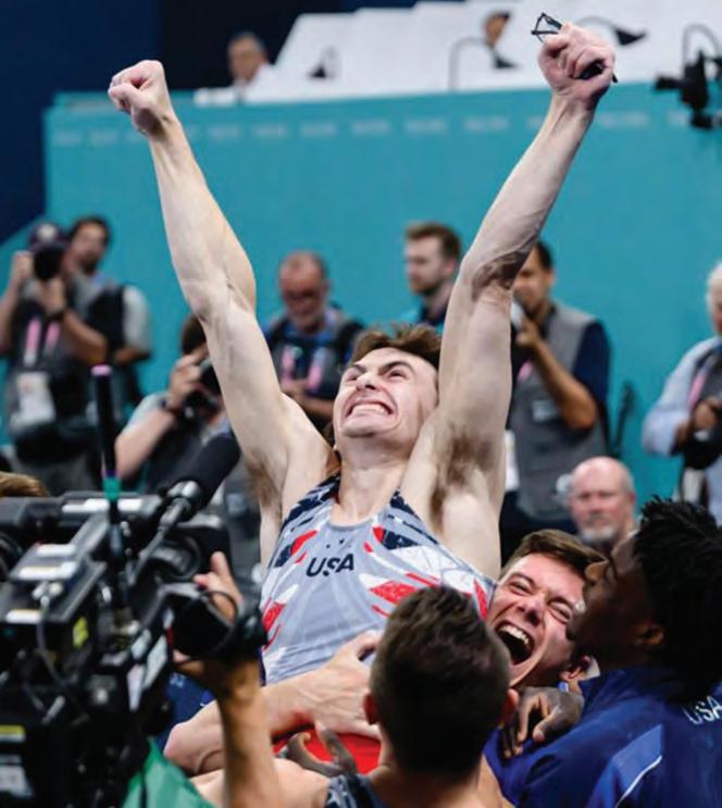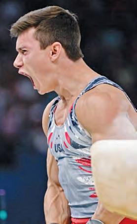 Prior to the Olympics, Nedoroscik and teammate Brody Malone spent time training at Sarasota’s EVO Gymnastics, where they honed their routines under the guidance of coaches like Sam Mikulak, a threetime Olympian himself. In gymnastics, points can be deducted for the smallest of mistakes, so every detail of a routine matters. It took months of prep — physical and mental — to get everyone’s routines in top shape for Paris. Even then, the initial qualification round didn’t go well for