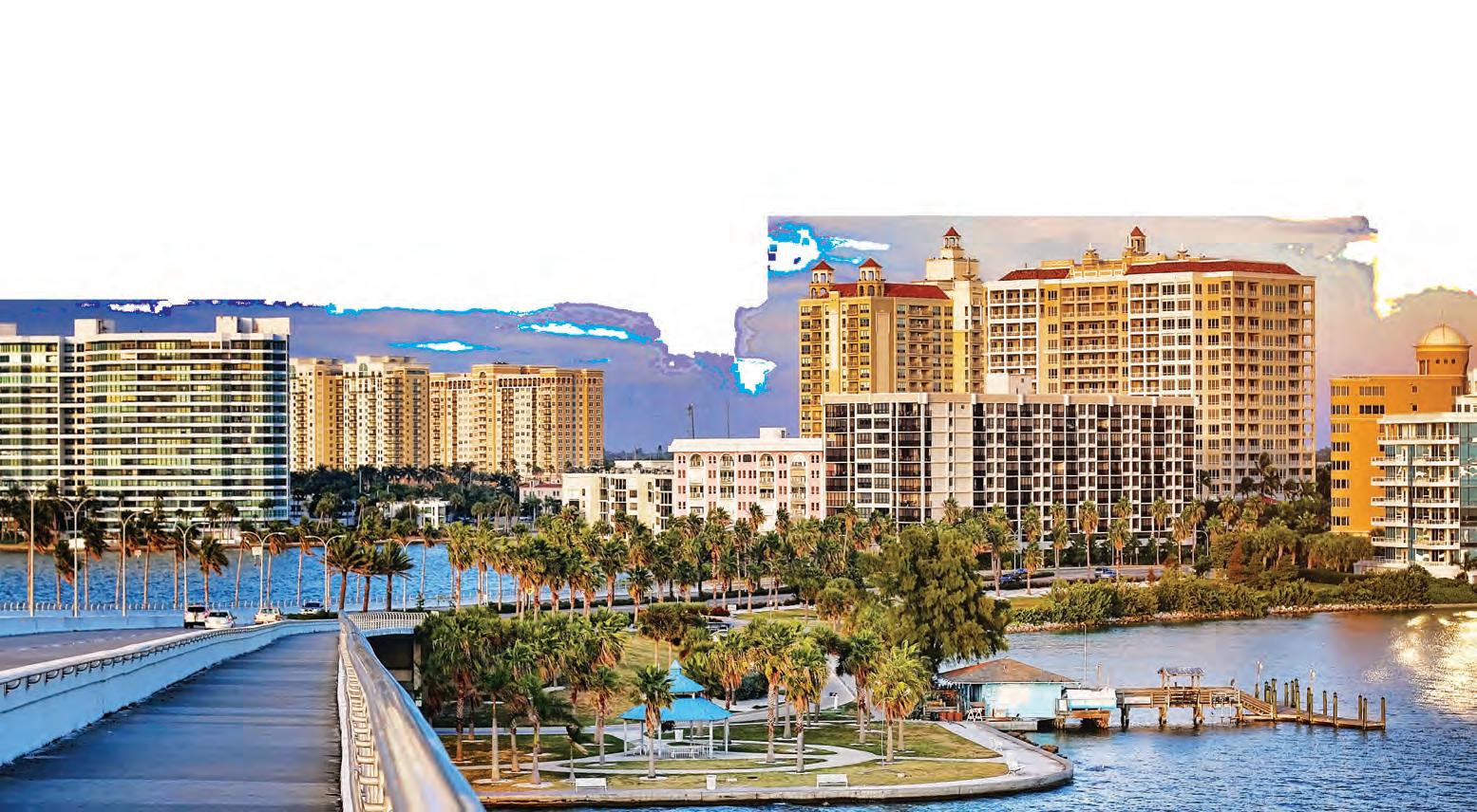 Gleaming condo towers along Sarasota’s bayfront create a scenic view in the 11th best place to live in the U.S.
