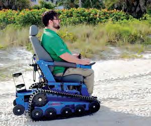 The EcoRover is an electric, hand-controlled track chair with all-terrain treads that can easily traverse sand, allowing enjoyment of the beach. Based in North Port, the EcoRover chair was invented by company President Cordell Jeter, a paraplegic as a result of injuries sustained in an auto accident.
