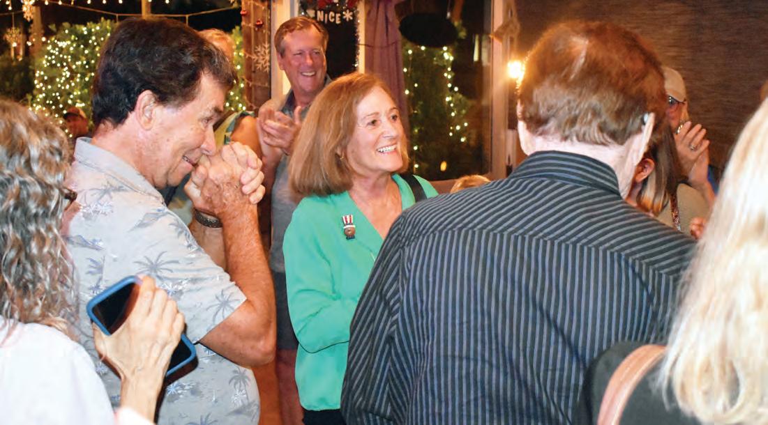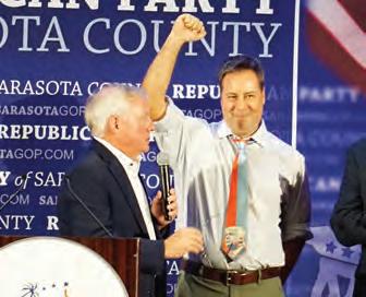 Newly elected Charter Review Board District 4 member Greg “Tex” Bukowski celebrates his victory while being introduced by Chairman of the Republican Party of Sarasota County Jack Brill after securing a win for the GOP.