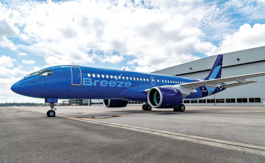 Breeze offers premium seating options and high-speed WiFi on its fleet of new Airbus A220-300 aircraft.