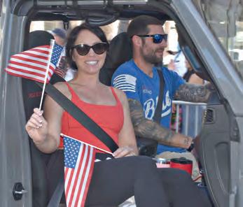 William and Shanna Warner drive along the route of the Veterans Day Parade.