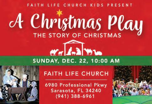 7:30 p.m. (Gates open at 6:30 p.m.) at The Tabernacle Church, 1414 DeSoto Road. Free. This 45-minute performance of the Nativity scene involves live animals and flying angels. There will be a petting zoo for children, hot chocolate and cookies. Reservations required. Visit TabSarasota.org.