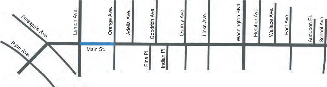 To account for the varying uses along Main Street, seven segments and corresponding scheduling priorities divide the visioning. Segment 1A, for example, between School Avenue and East Avenue will probably come last because that is the area undergoing the most change from outdated uses as well as potential changes to Sarasota County Jail.