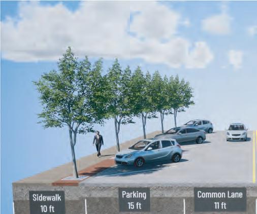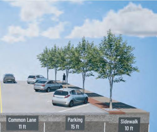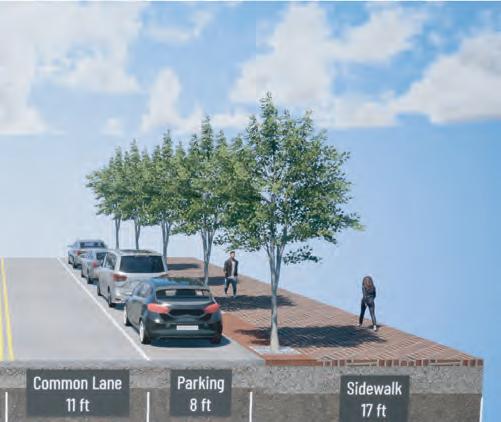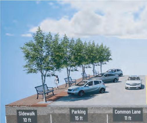 To accommodate the wider sidewalks, some segments will eliminate parking on one side of the street or convert angled spaces to parallel parking. Consistent throughout the block-by-block facelift will be materials used for sidewalks and hardscapes, trees and other plant-