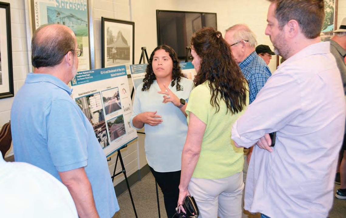 Sarasota Chief Transportation Planner Alvimarie Corales speaks with residents about complete street plans for 10th Street and Boulevard of the Arts.