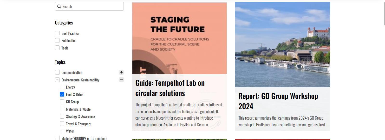“Tools”, “Article”, and “Event”. “Best practice” includes case studies of projects and festivals that are exceptional in some way and can serve as a role model for others to copy.