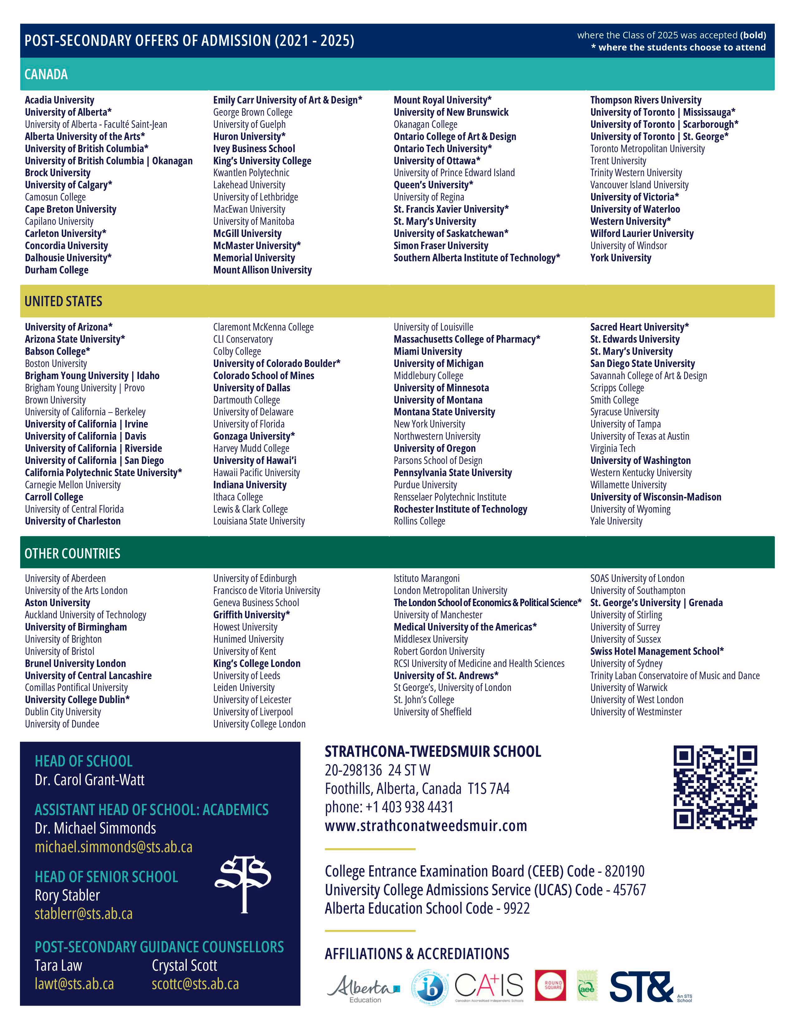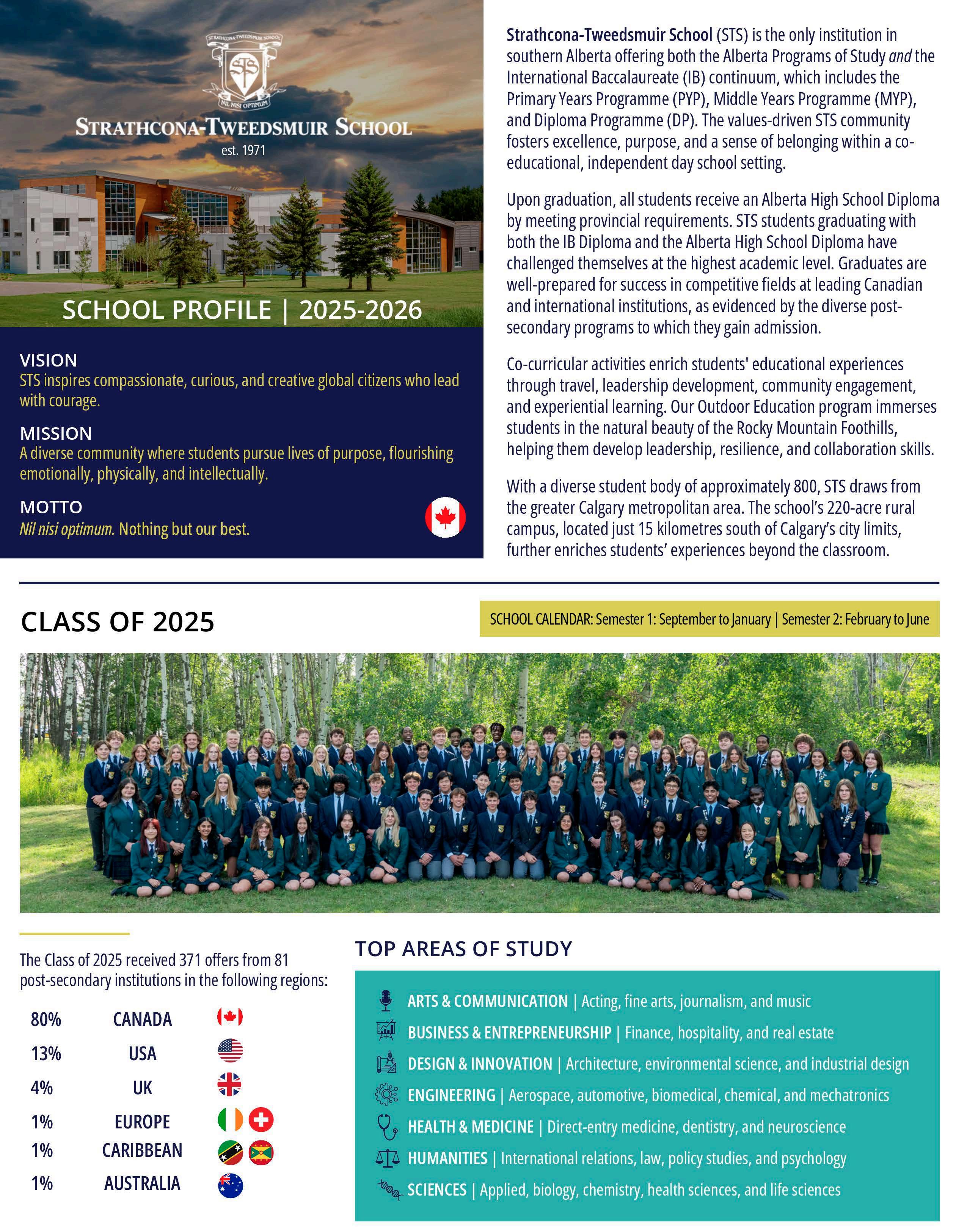 • STS graduates continued to receive strong post-secondary offers and scholarships across Canada, the United States, and abroad.