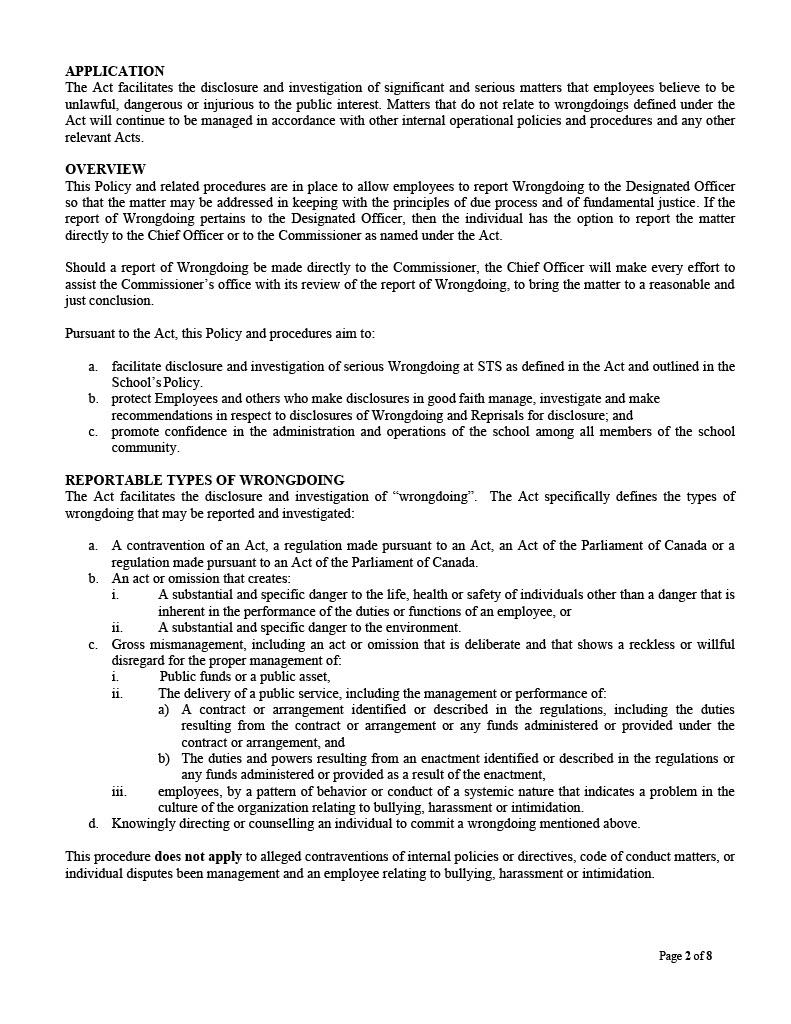 All STS personnel have the right and obligation to report any wrongdoing. An employee who reports such behaviour in good faith will be protected against any form of retaliation or adverse action within the school's power