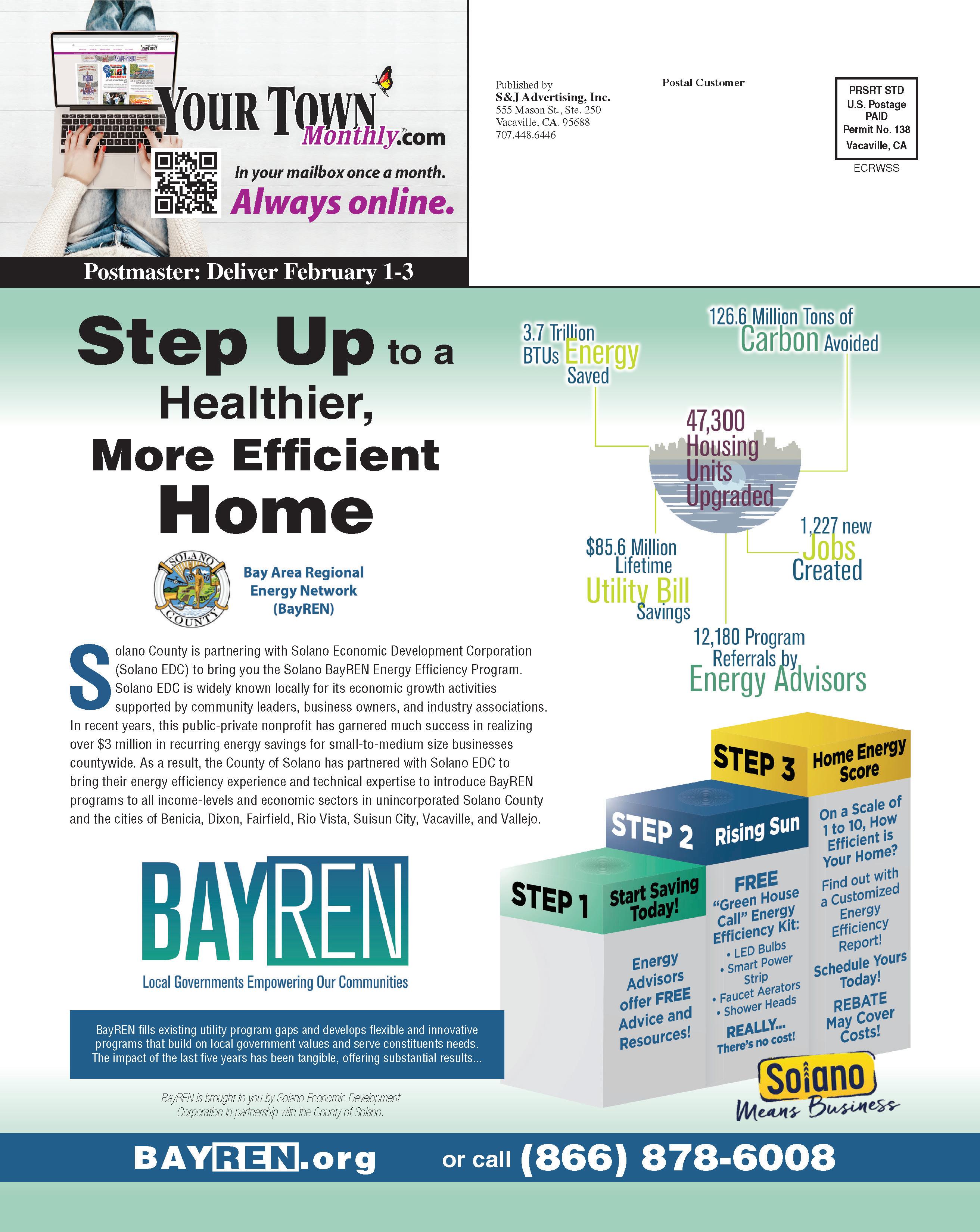 With 8 unique local editions, Your Town Monthly® is the premier direct mail magazine from the East San Francisco Bay Area to the West Sacramento Valley. Over 3.1 million are distributed to mailboxes in the Tri-Valley, Diablo Valley, Solano County and surrounding areas every year.