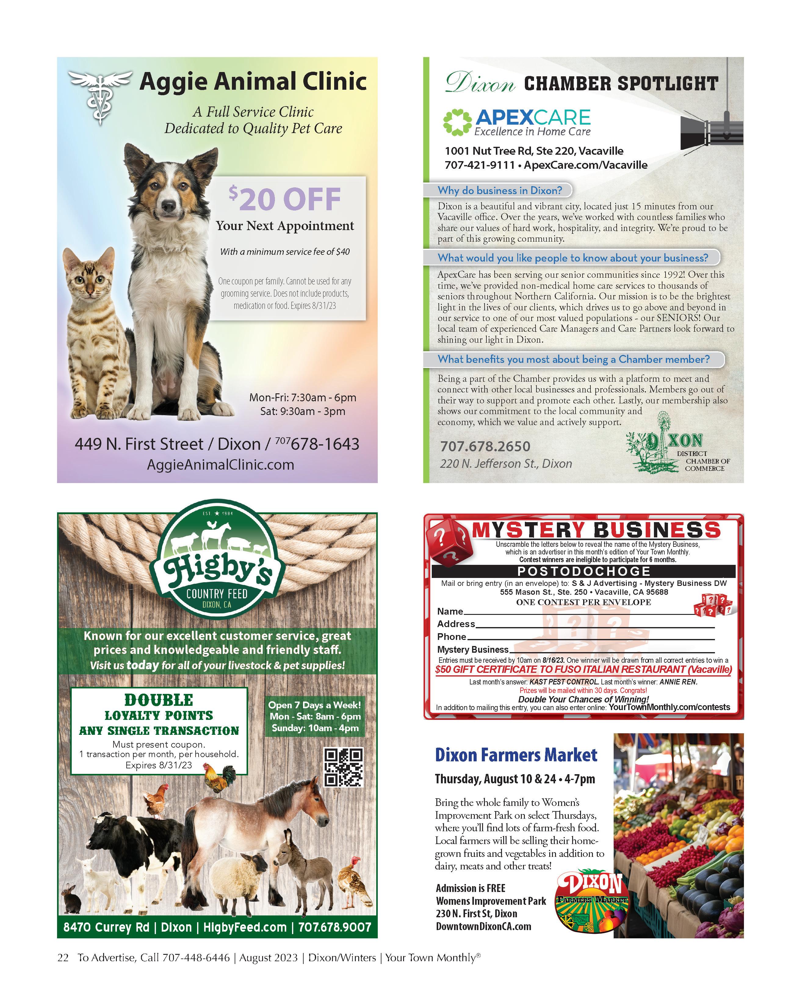 With 8 unique local editions, Your Town Monthly® is the premier direct mail magazine from the East San Francisco Bay Area to the West Sacramento Valley. Over 3.1 million are distributed to mailboxes in the Tri-Valley, Diablo Valley, Solano County and surrounding areas every year.