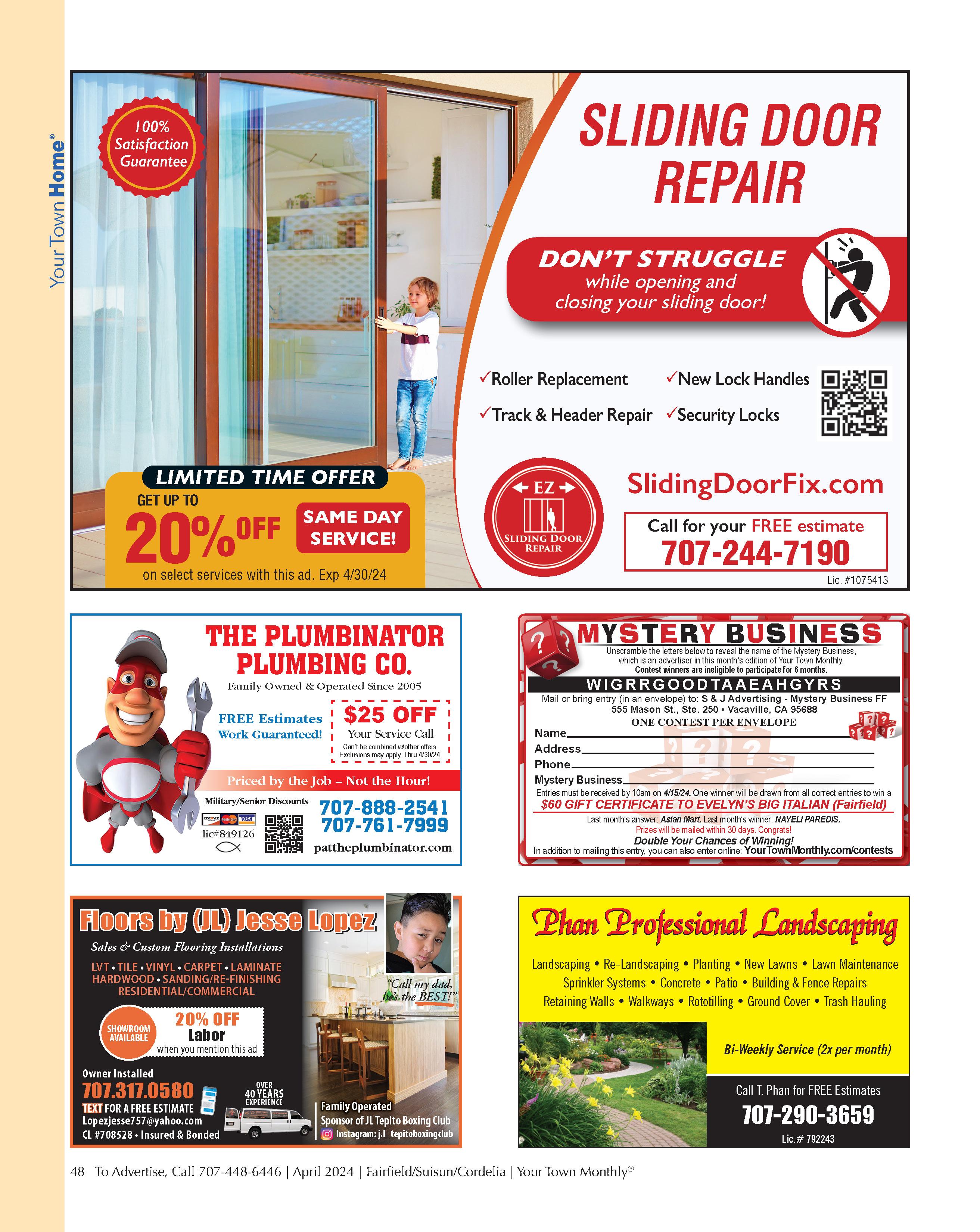 With 8 unique local editions, Your Town Monthly® is the premier direct mail magazine from the East San Francisco Bay Area to the West Sacramento Valley. Over 3.1 million are distributed to mailboxes in the Tri-Valley, Diablo Valley, Solano County and surrounding areas every year.