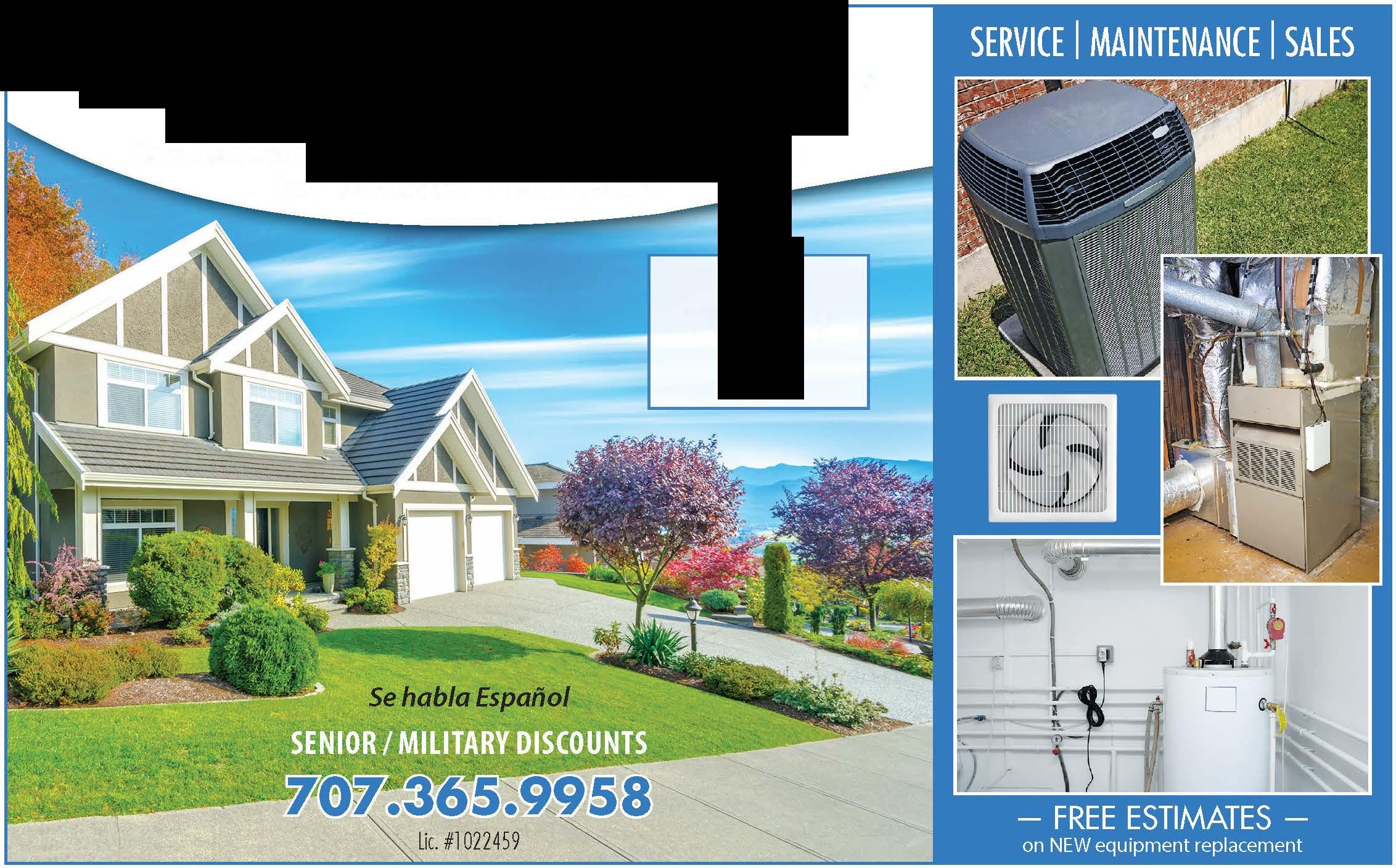 Trust The Most Experienced a Premier Trane Dealer In Solano County! EXPERTS At Installing Dual Fuel Systems! Save Money on Energy with a Hybrid, All-Electric or Replacement System. A/CNOTWORKING? s59 DIAGNOSTIC A/C SPECIAL Forowner-occupiedhomes.Doesnotapplytoafter-hoursservice. Exp.6/30/23 ASK USABOUT REBATES! -ServingSolanoCountySince 1979- Lie#996875 FREESECONDOPINION with proofofP1writtenestimate! DoingBusiness TheRightWay ForOver40Years.