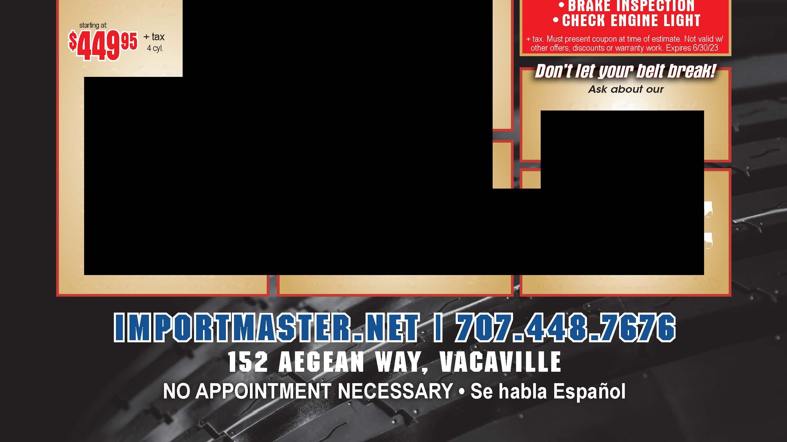 Must presentcoupon attime ofservice. Notvalid with any other offer. Exp. 6/30/23. Novirtualcoupons. 10 To Advertise, Call 707-448-6446 I June 2023 Fairfield/Suisun/Cordelia I YourTown Monthly@ .. EN61NES•TRAIISMISSI 3 Years/ 100,000 Miles/ Parts& Labor Nationwide Warranty!