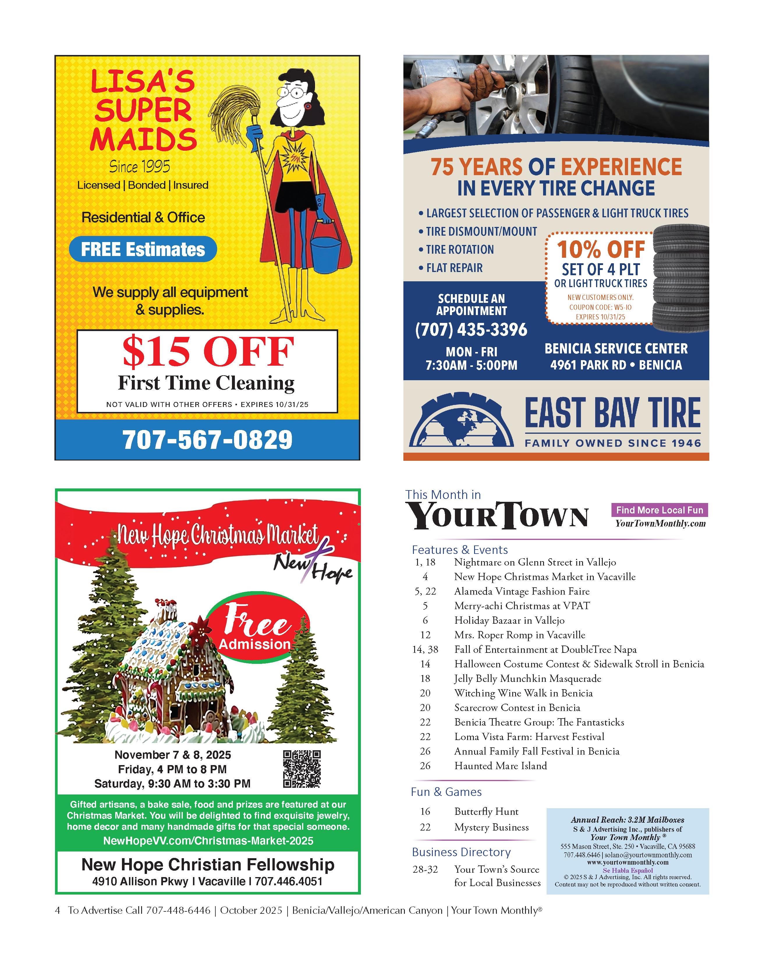 With 8 unique local editions, Your Town Monthly® is the premier direct mail magazine from the East San Francisco Bay Area to the West Sacramento Valley. Over 3.2 million are distributed to mailboxes in the Tri-Valley, Diablo Valley, Solano County and surrounding areas every year.