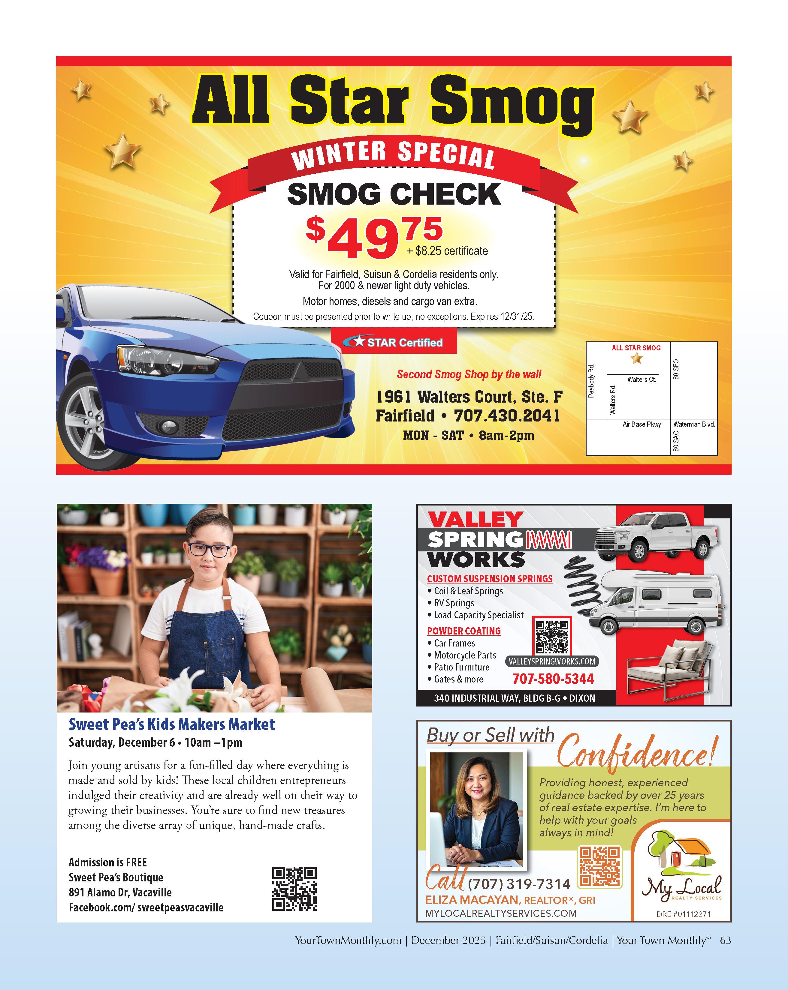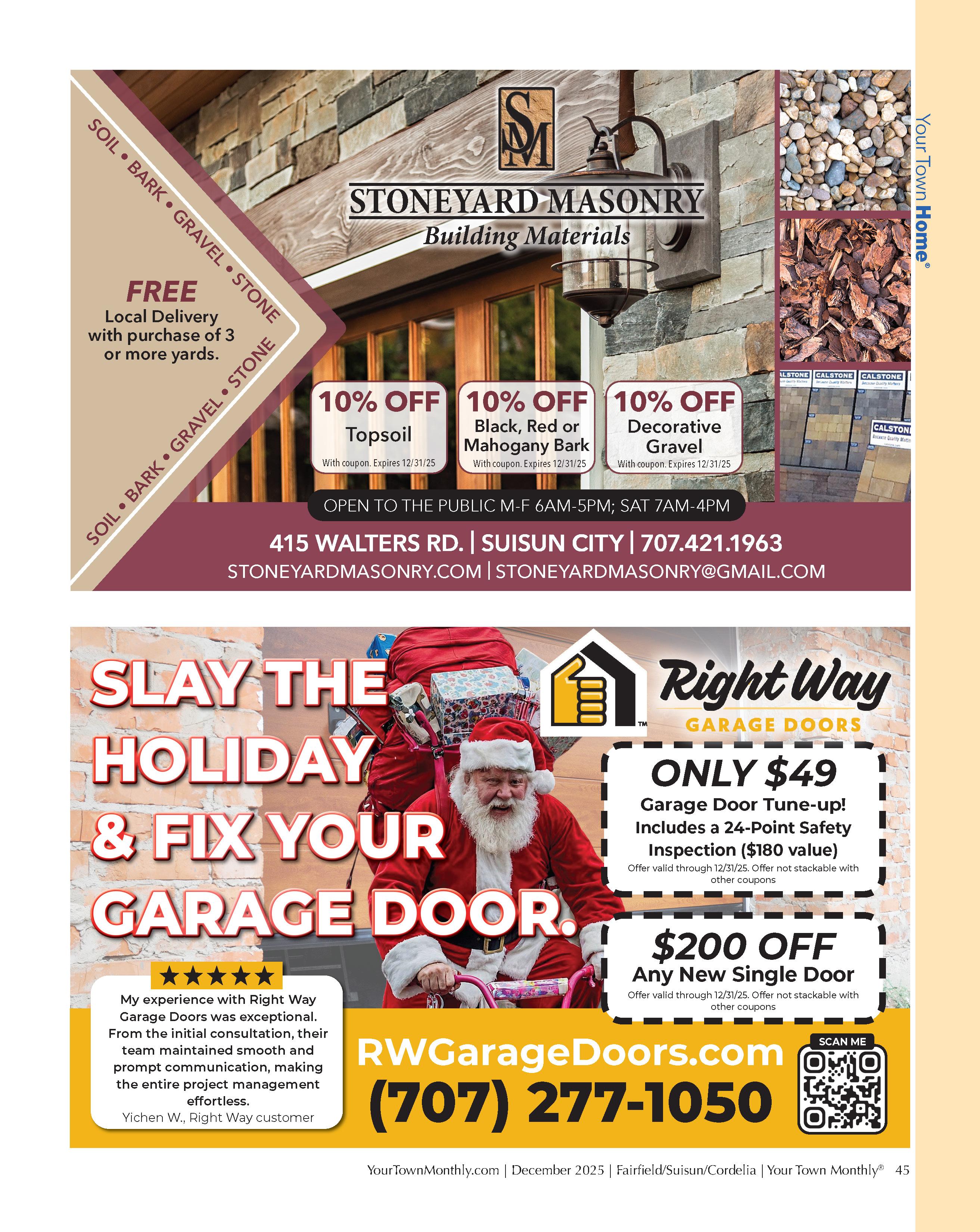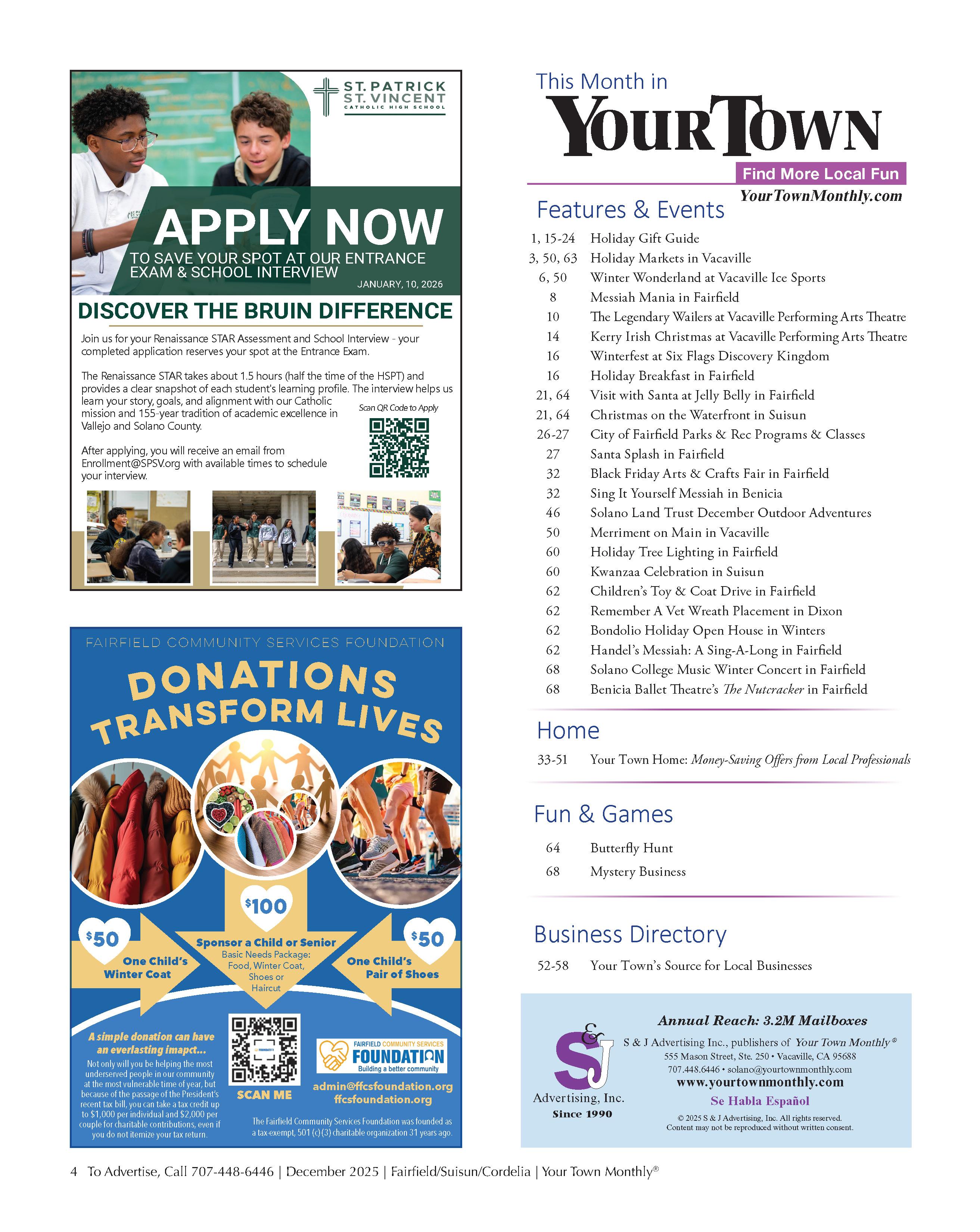 With 8 unique local editions, Your Town Monthly® is the premier direct mail magazine from the East San Francisco Bay Area to the West Sacramento Valley. Over 3.2 million are distributed to mailboxes in the Tri-Valley, Diablo Valley, Solano County and surrounding areas every year.