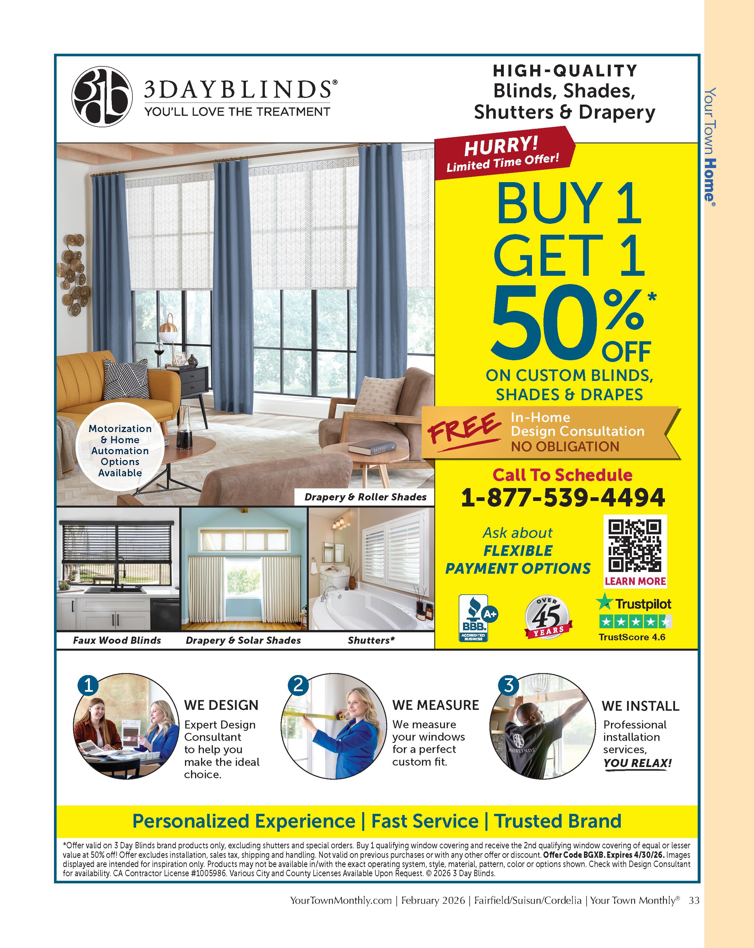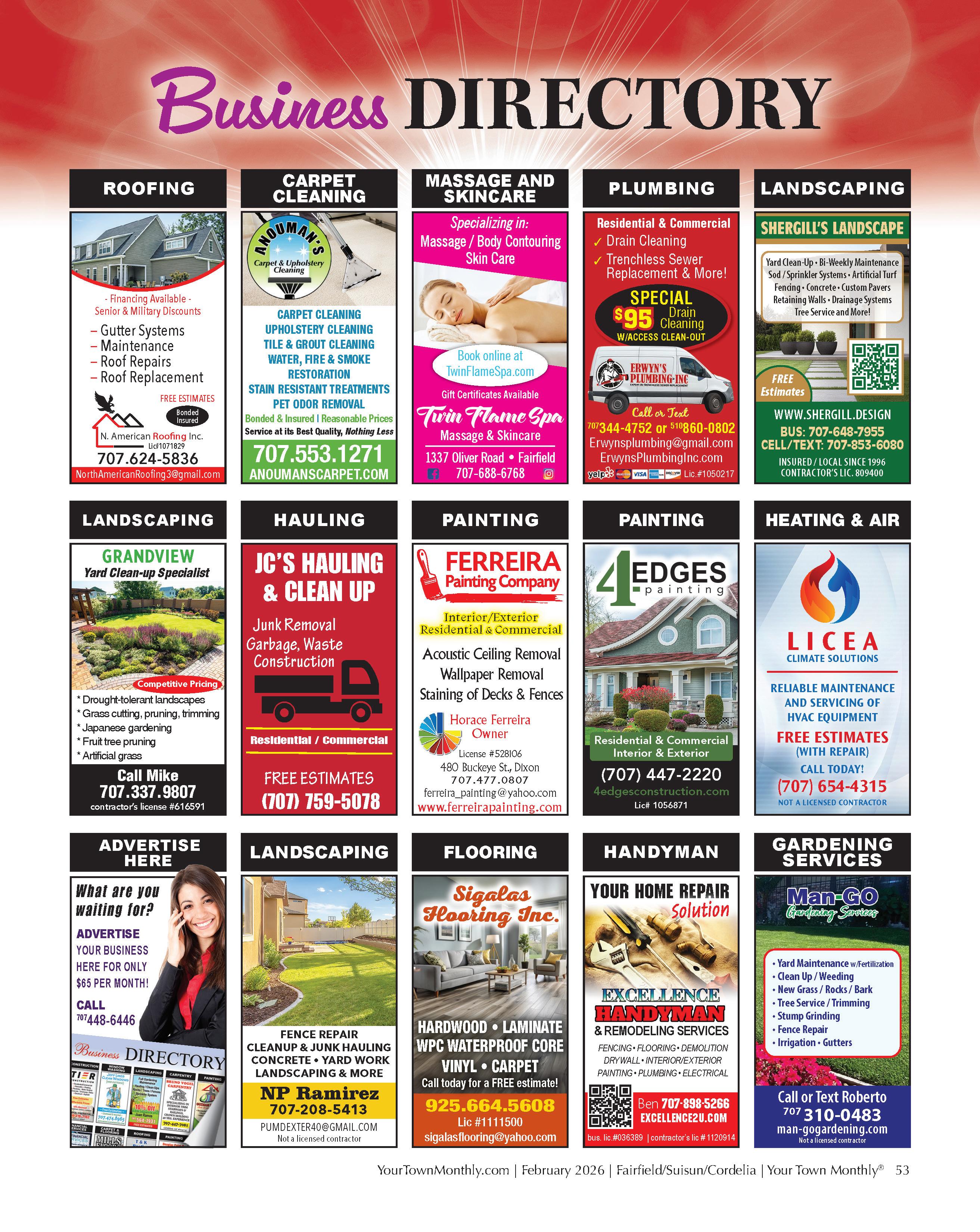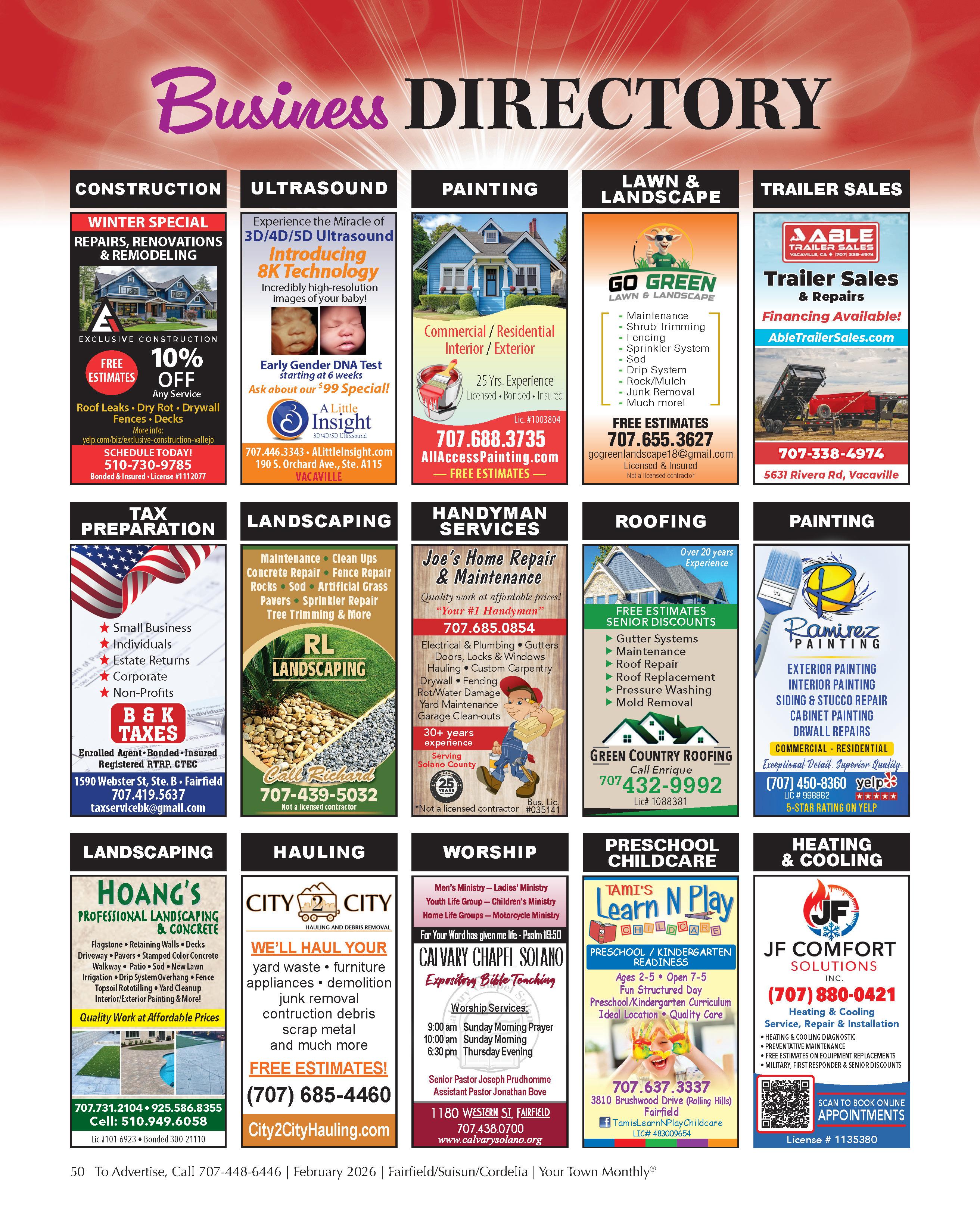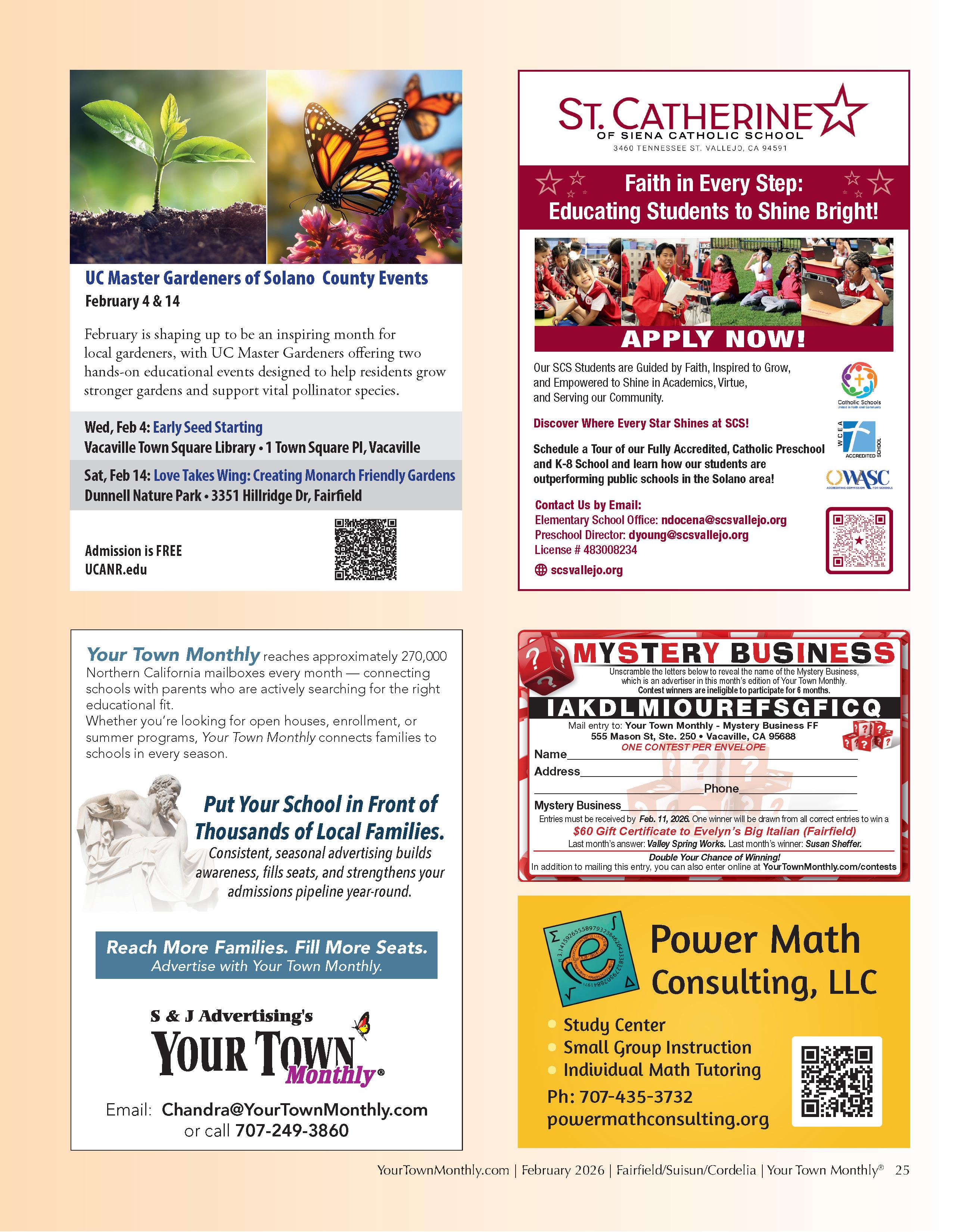 With 8 unique local editions, Your Town Monthly® is the premier direct mail magazine from the East San Francisco Bay Area to the West Sacramento Valley. Over 3.2 million are distributed to mailboxes in the Tri-Valley, Diablo Valley, Solano County and surrounding areas every year.