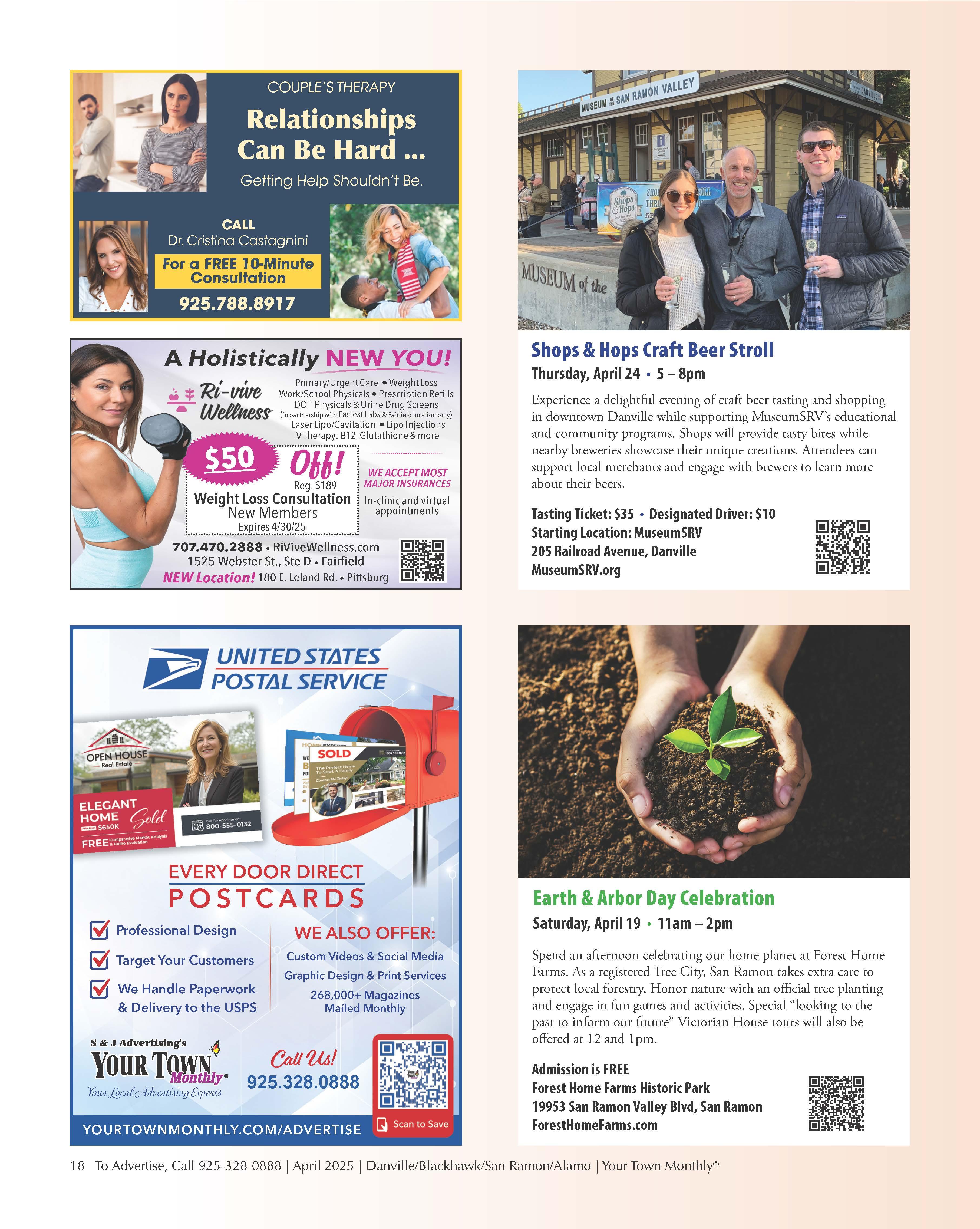With 8 unique local editions, Your Town Monthly® is the premier direct mail magazine from the East San Francisco Bay Area to the West Sacramento Valley. Over 3.2 million are distributed to mailboxes in the Tri-Valley, Diablo Valley, Solano County and surrounding areas every year.