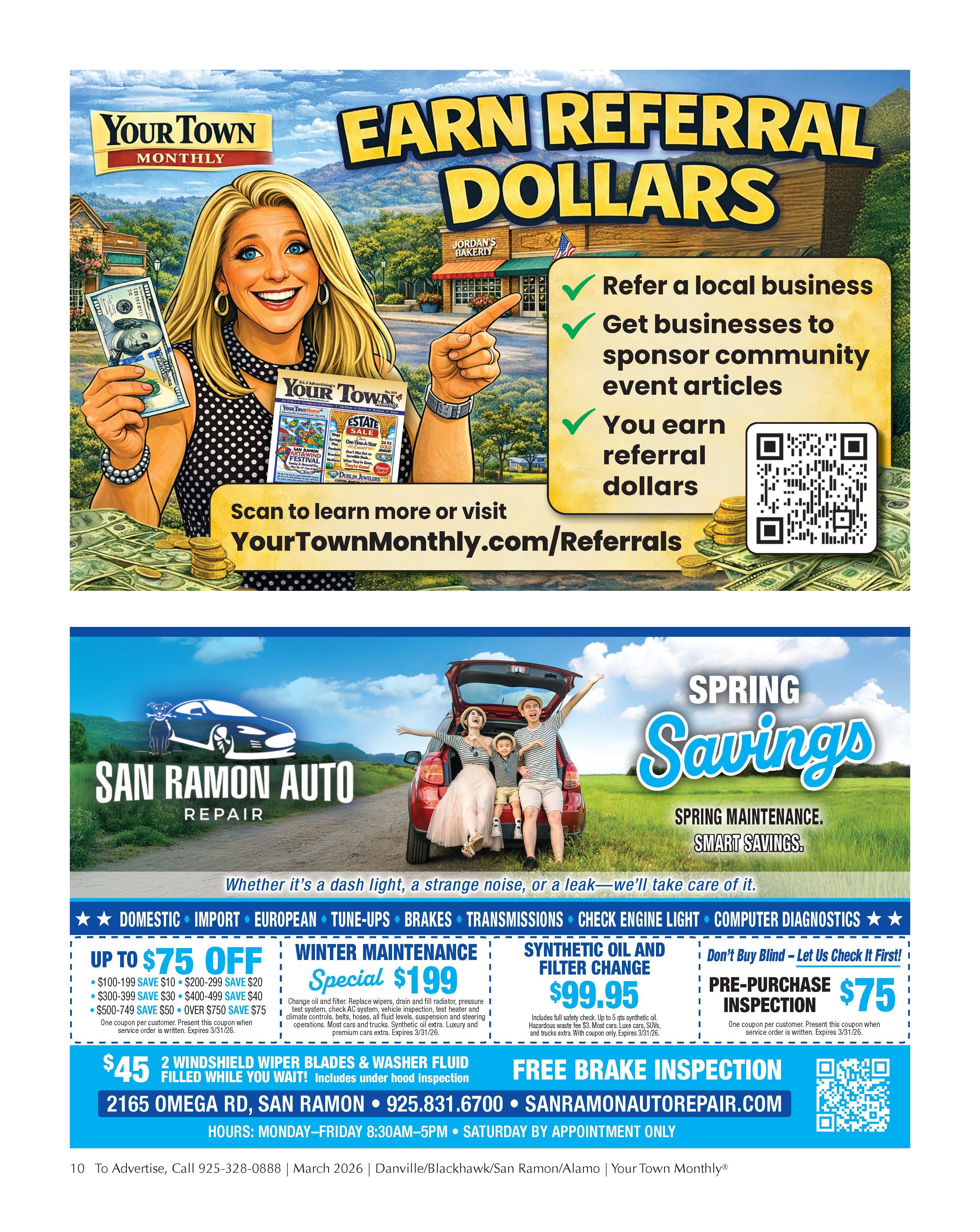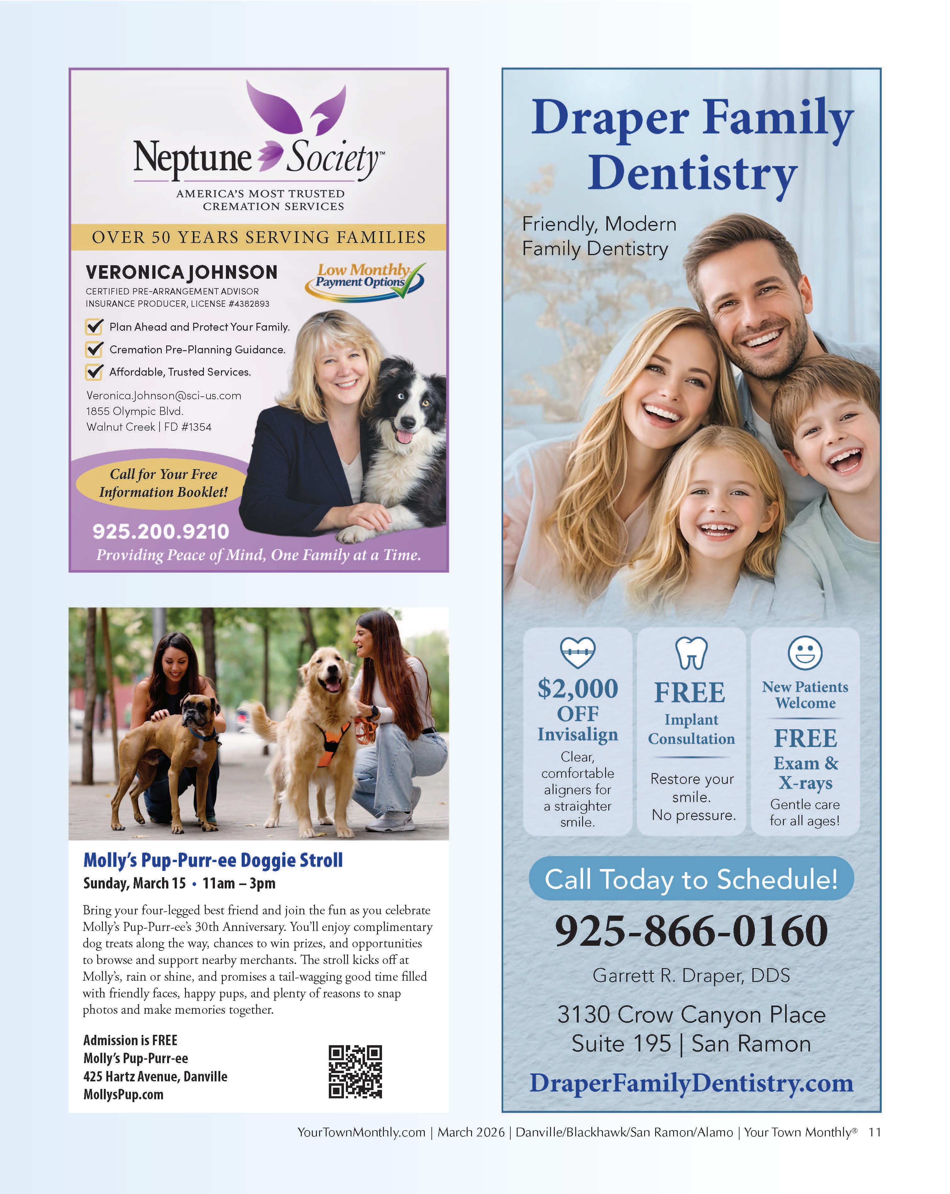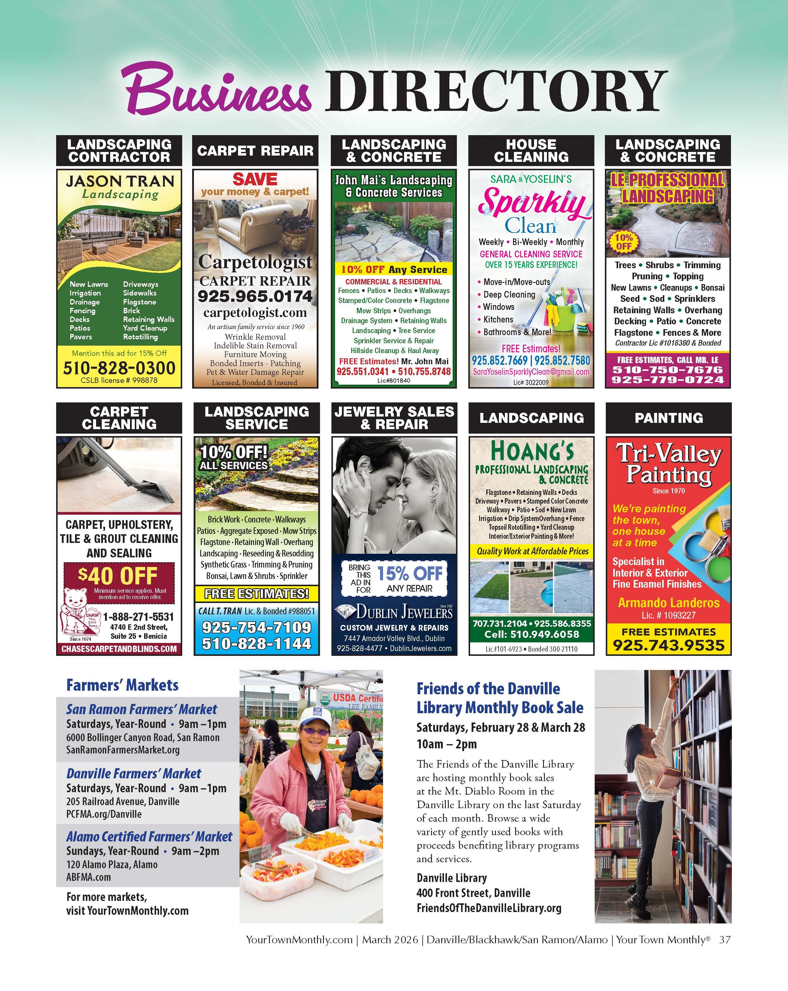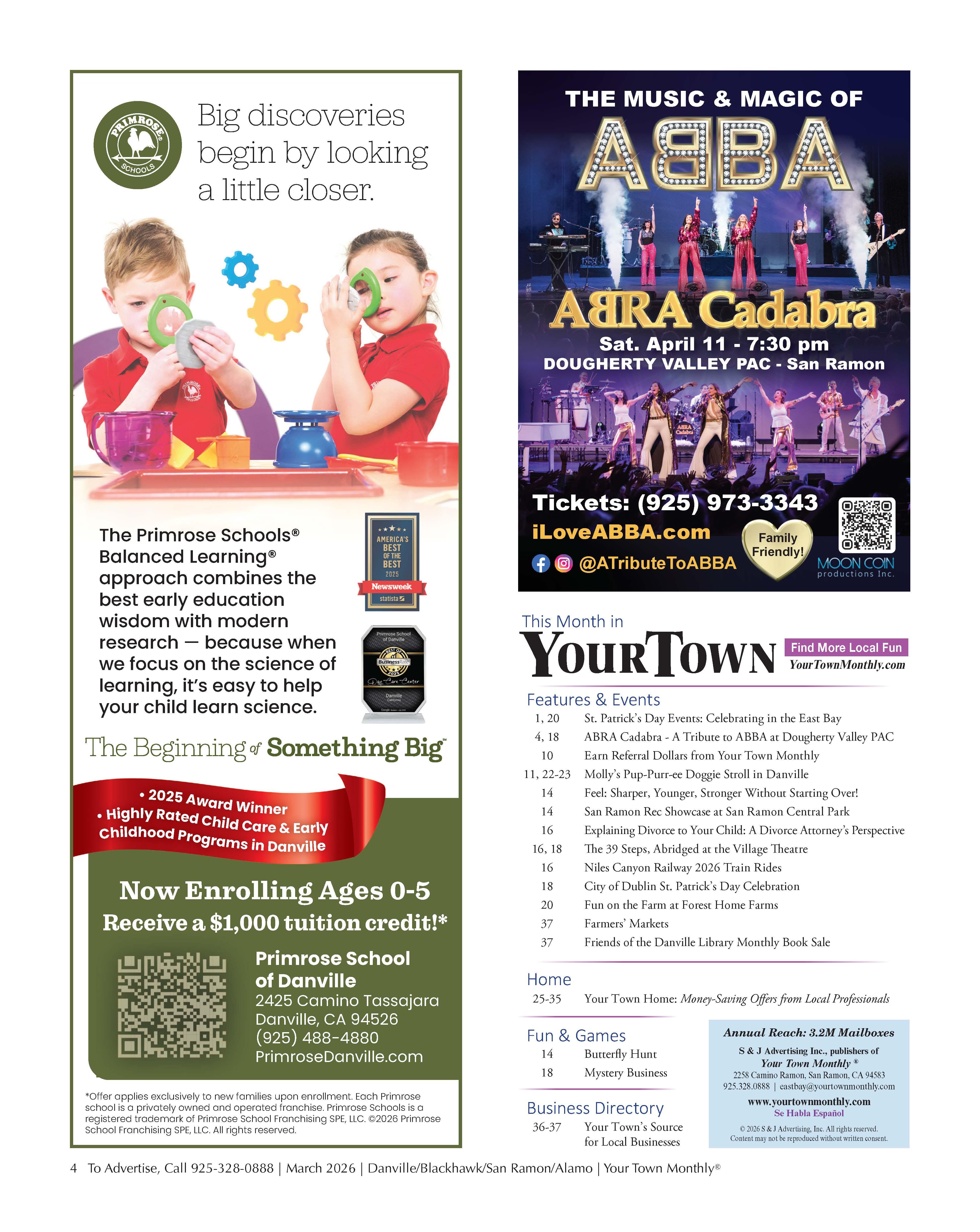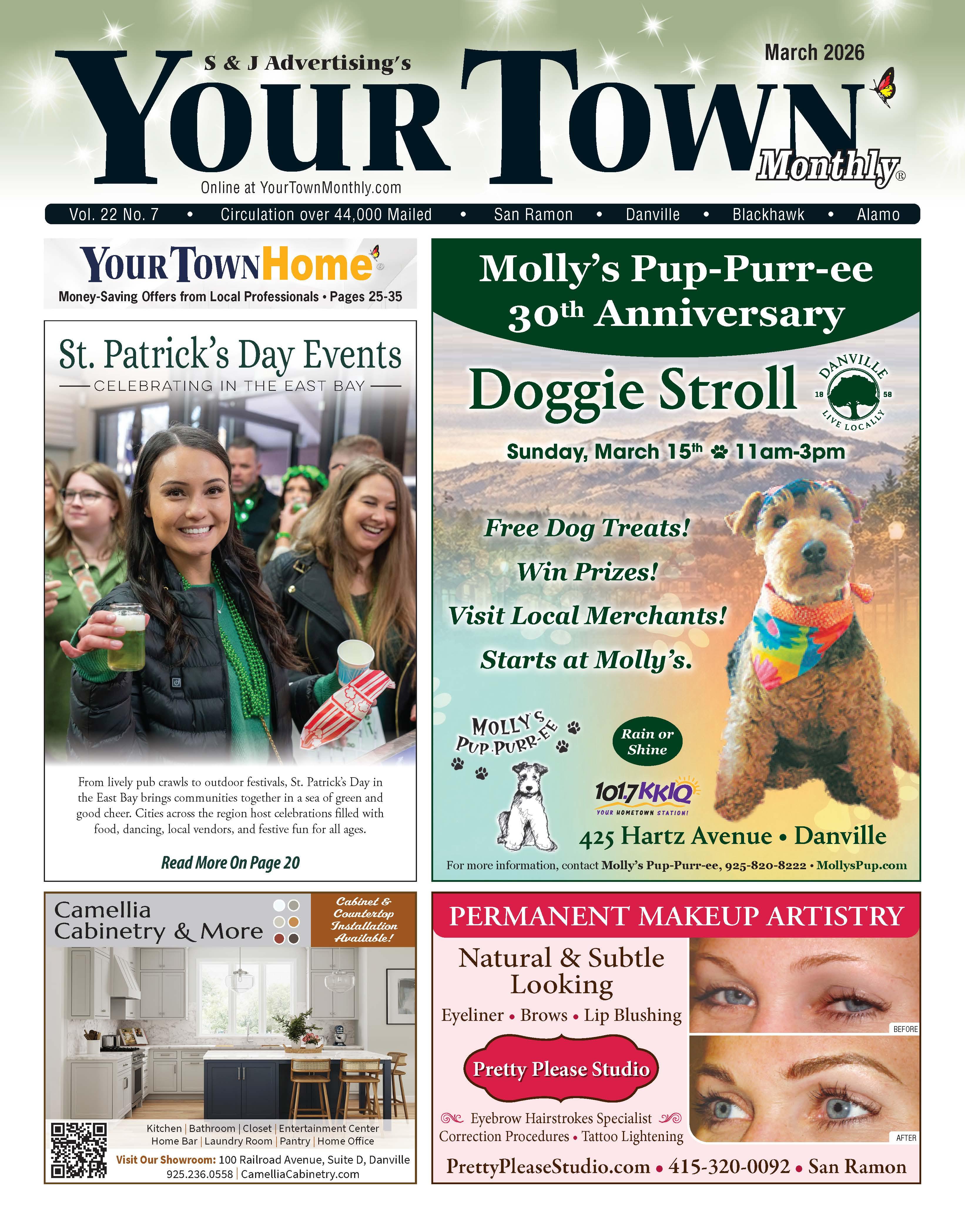 With 8 unique local editions, Your Town Monthly® is the premier direct mail magazine from the East San Francisco Bay Area to the West Sacramento Valley. Over 3.2 million are distributed to mailboxes in the Tri-Valley, Diablo Valley, Solano County and surrounding areas every year.