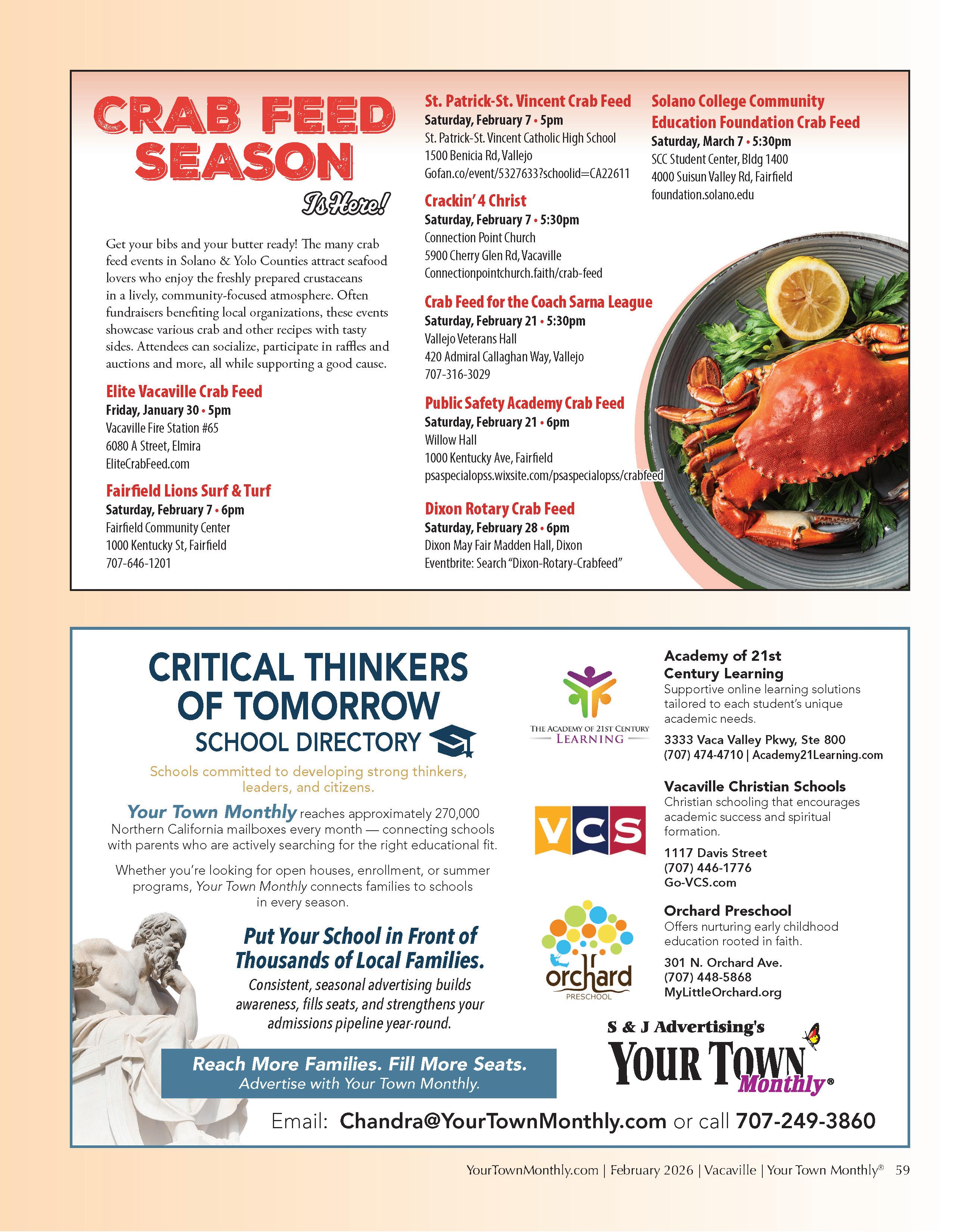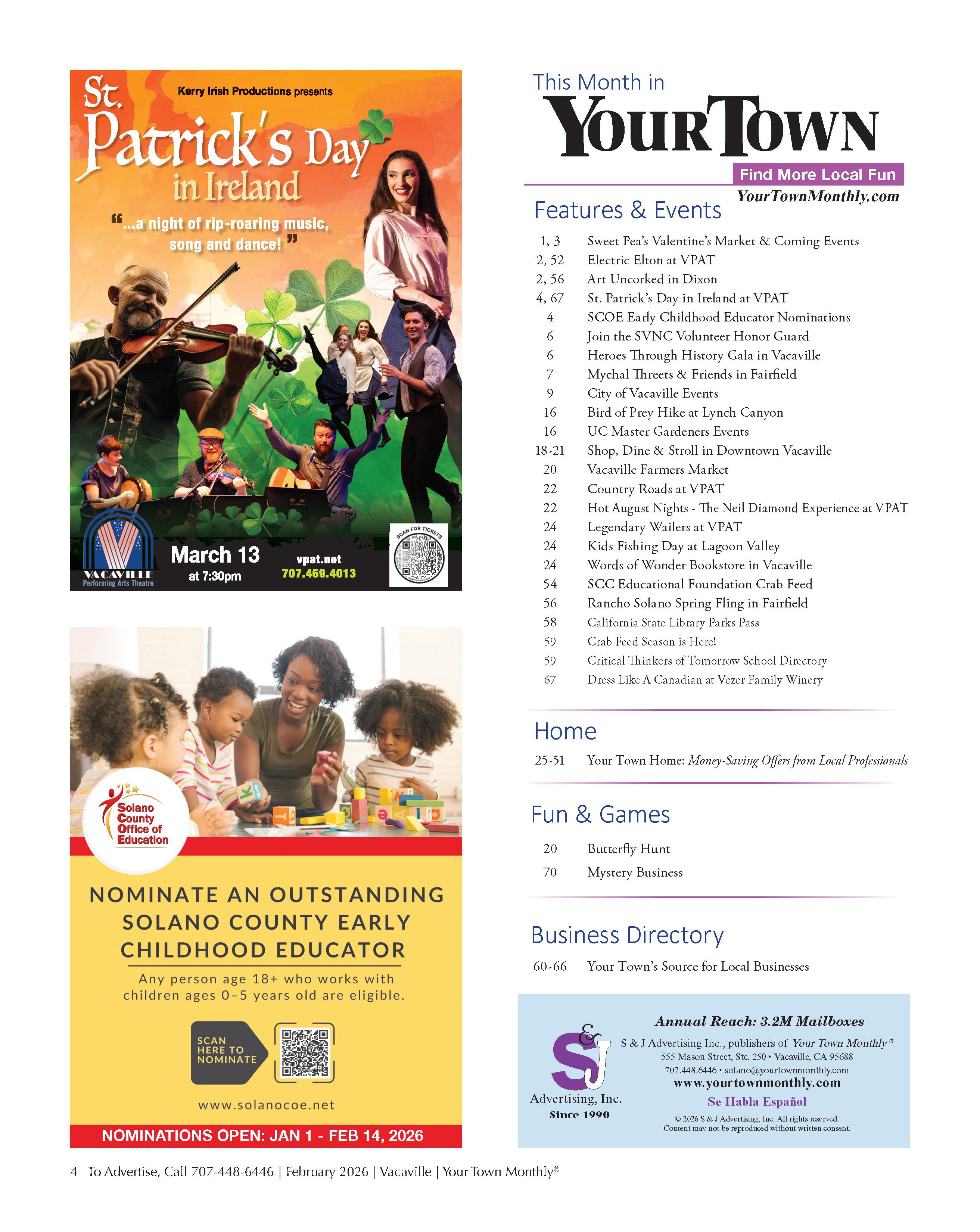 With 8 unique local editions, Your Town Monthly® is the premier direct mail magazine from the East San Francisco Bay Area to the West Sacramento Valley. Over 3.2 million are distributed to mailboxes in the Tri-Valley, Diablo Valley, Solano County and surrounding areas every year.