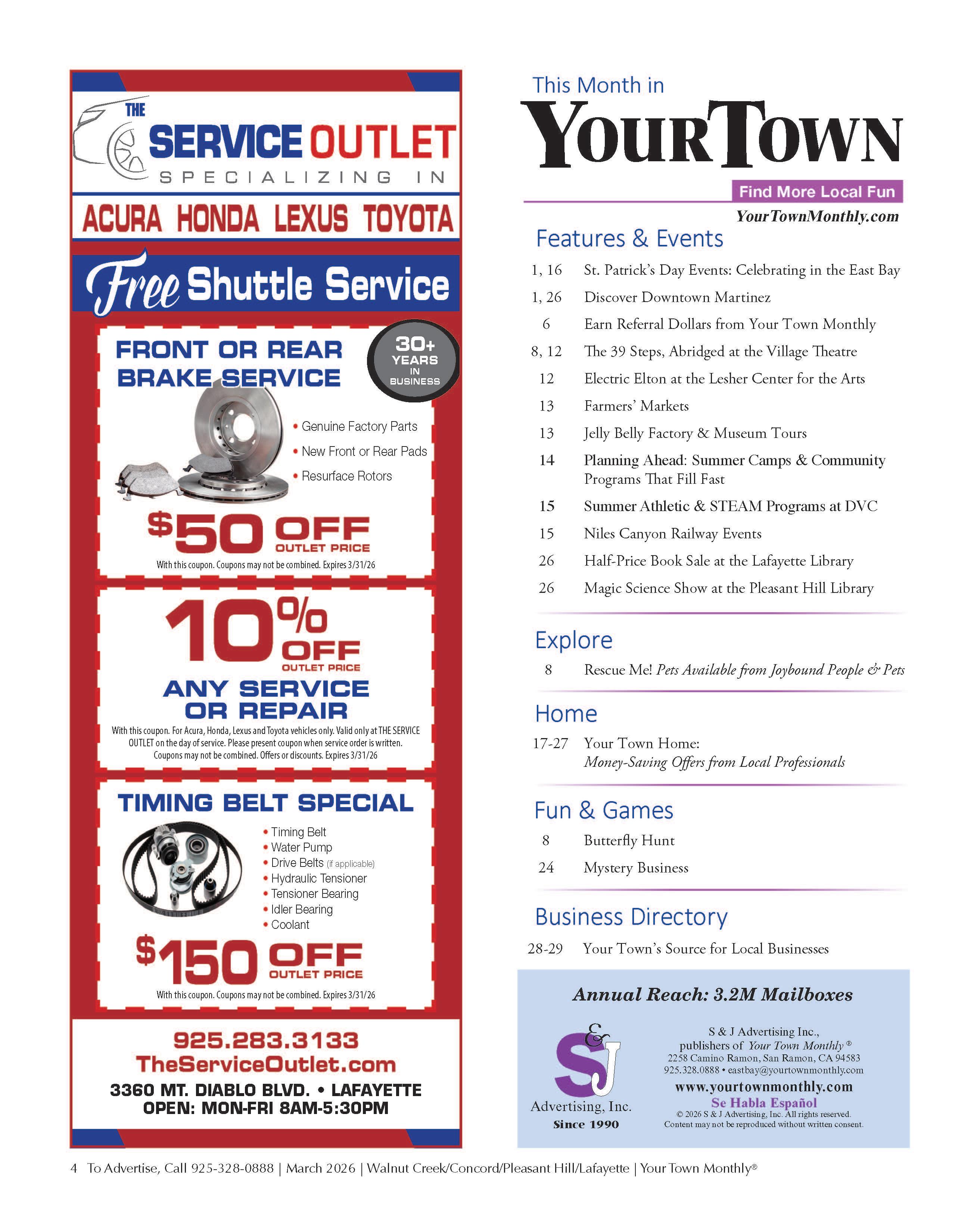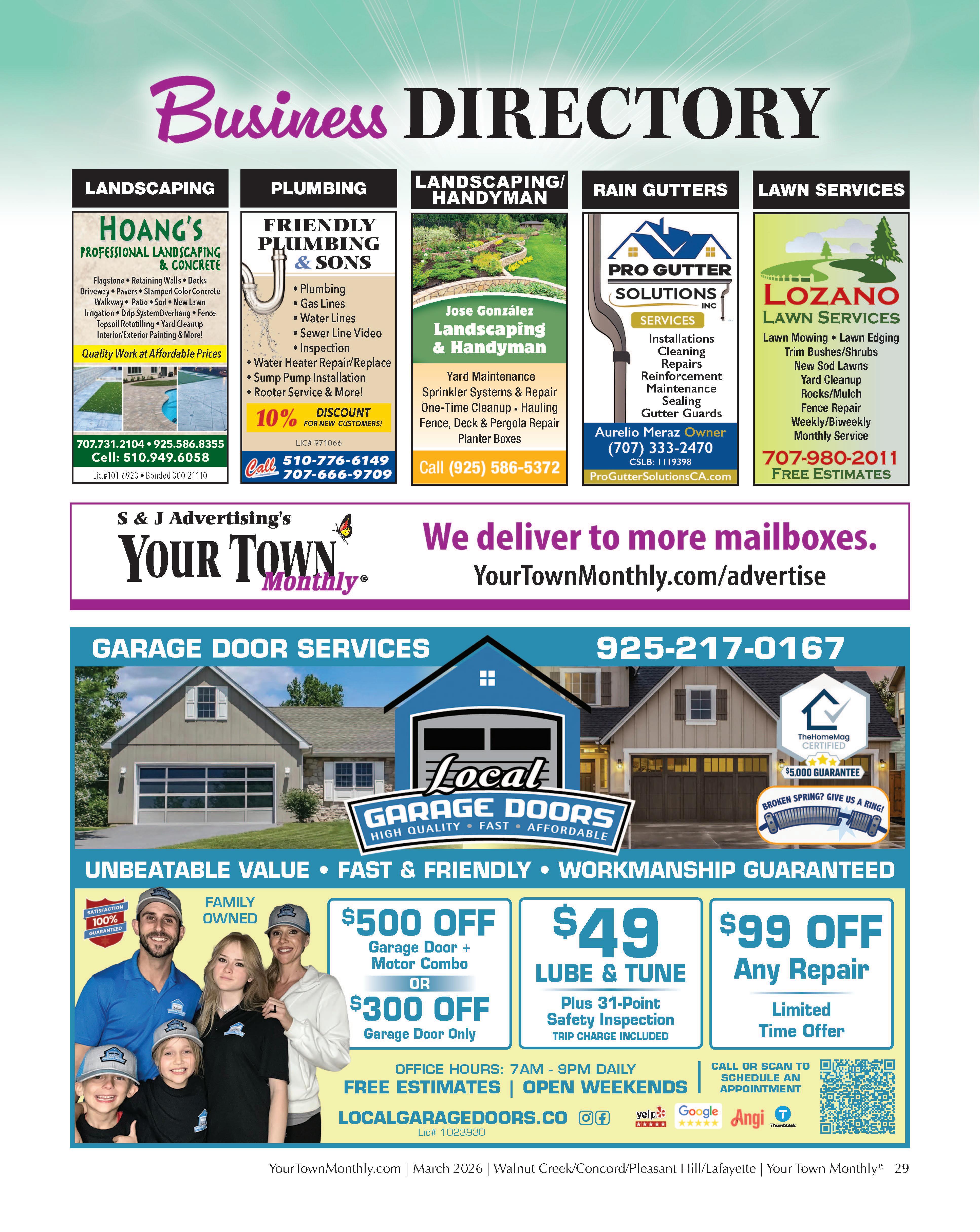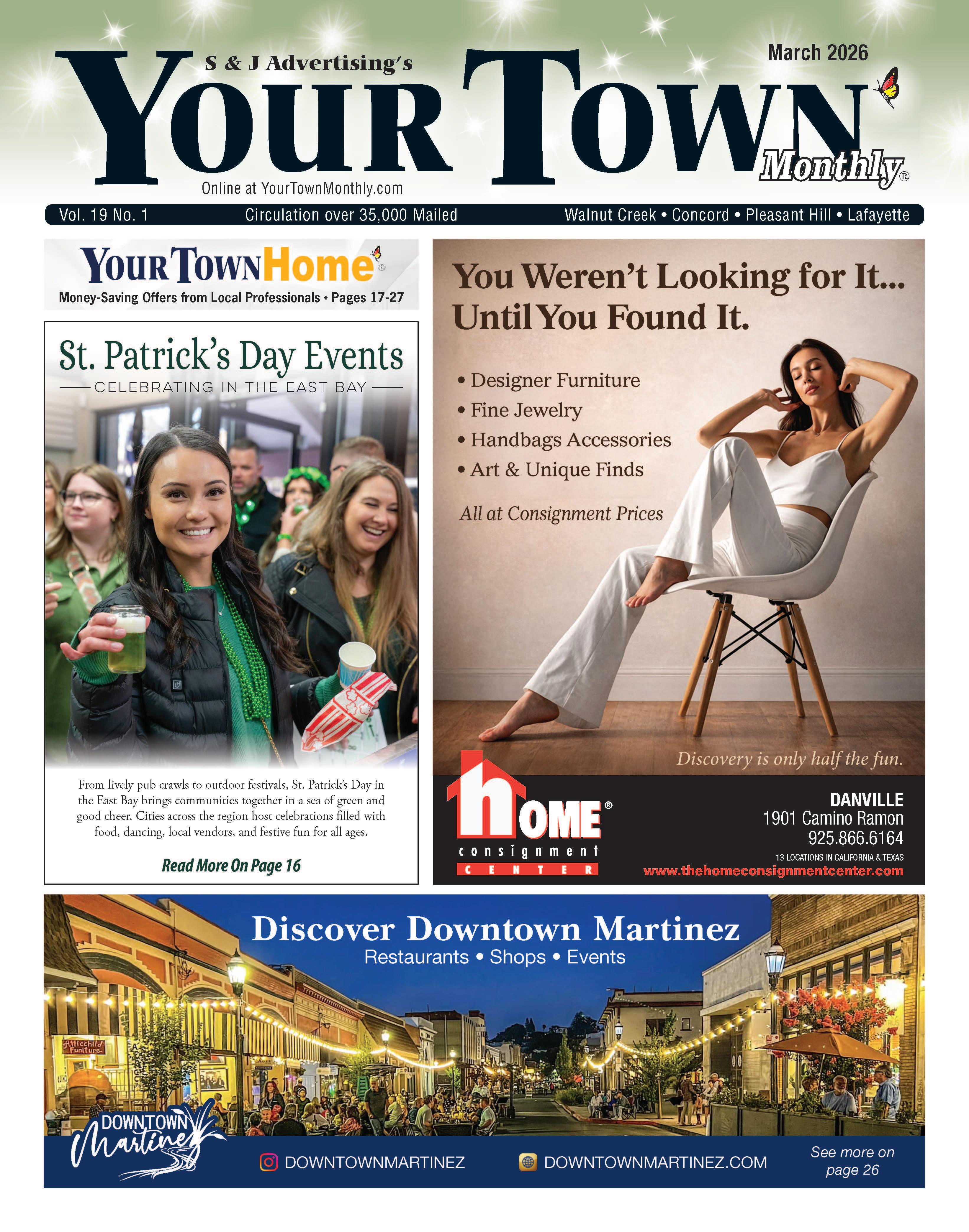 With 8 unique local editions, Your Town Monthly® is the premier direct mail magazine from the East San Francisco Bay Area to the West Sacramento Valley. Over 3.2 million are distributed to mailboxes in the Tri-Valley, Diablo Valley, Solano County and surrounding areas every year.