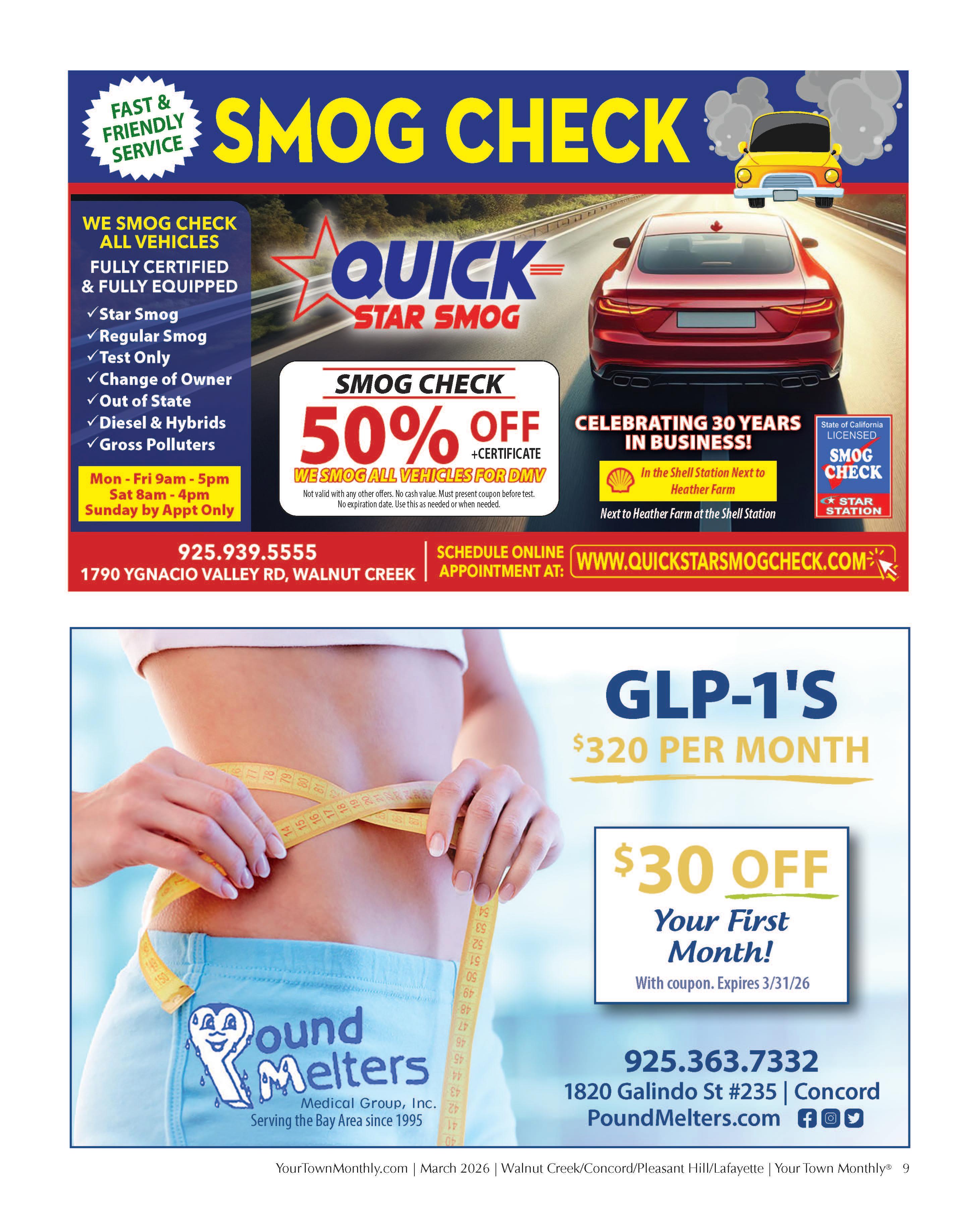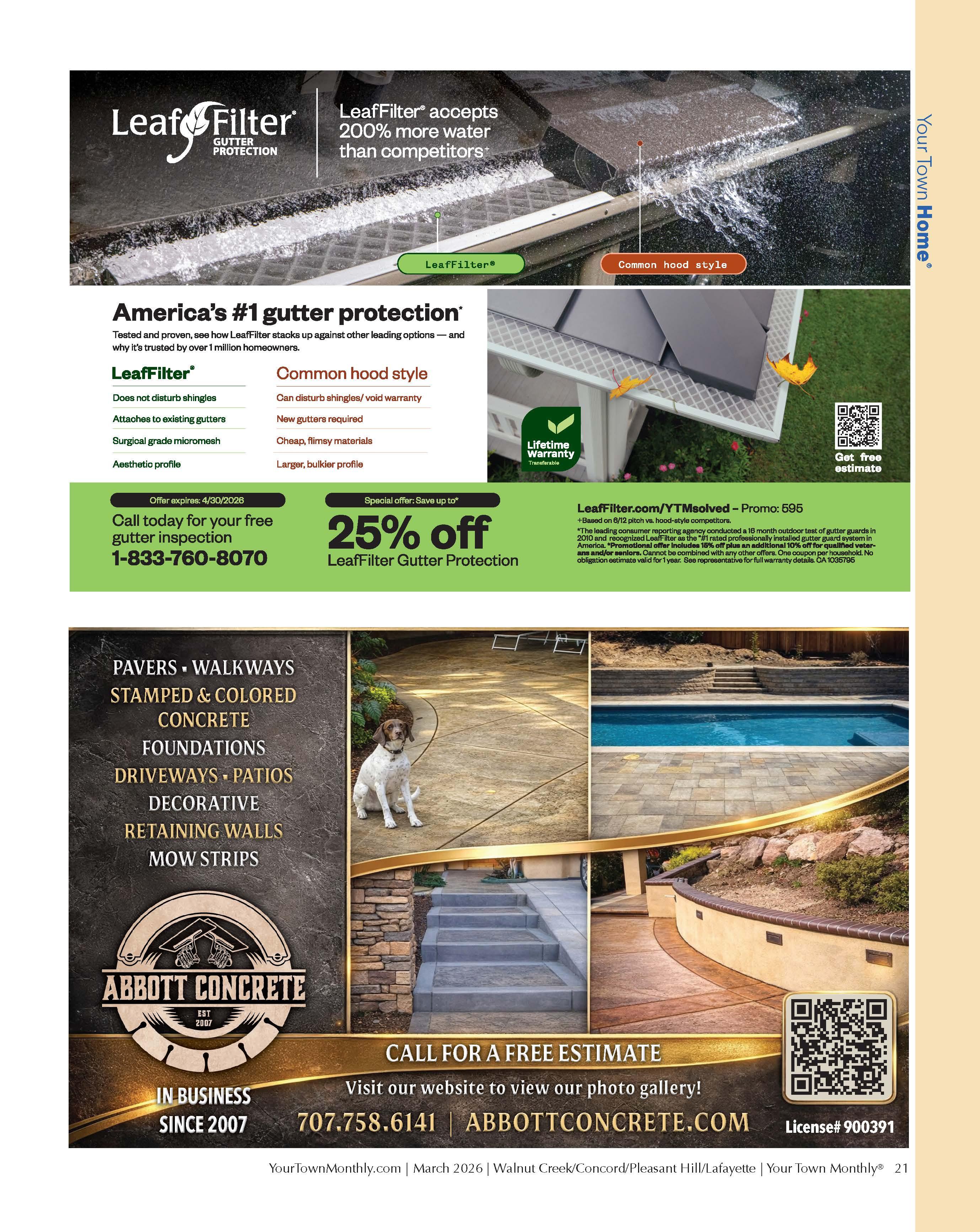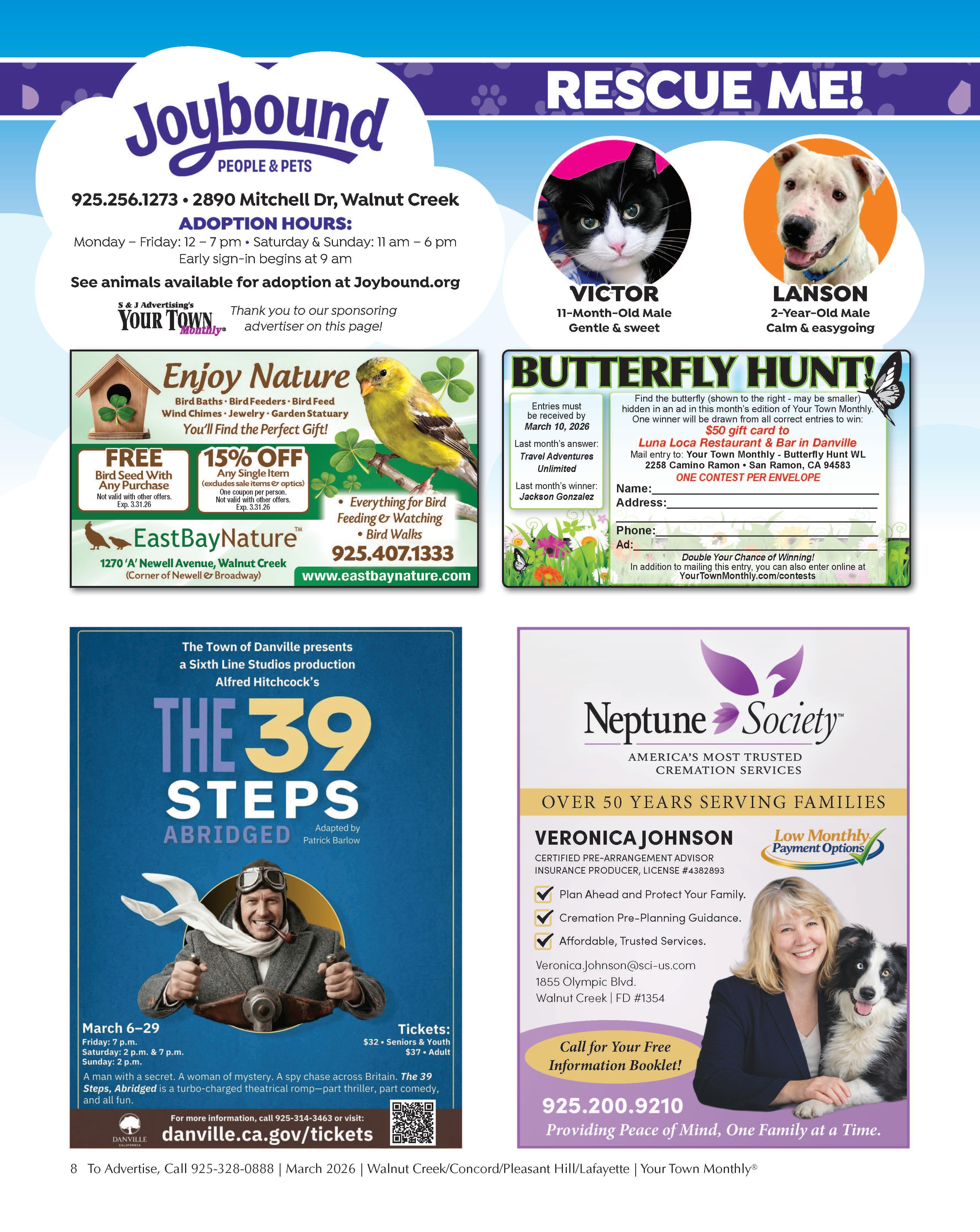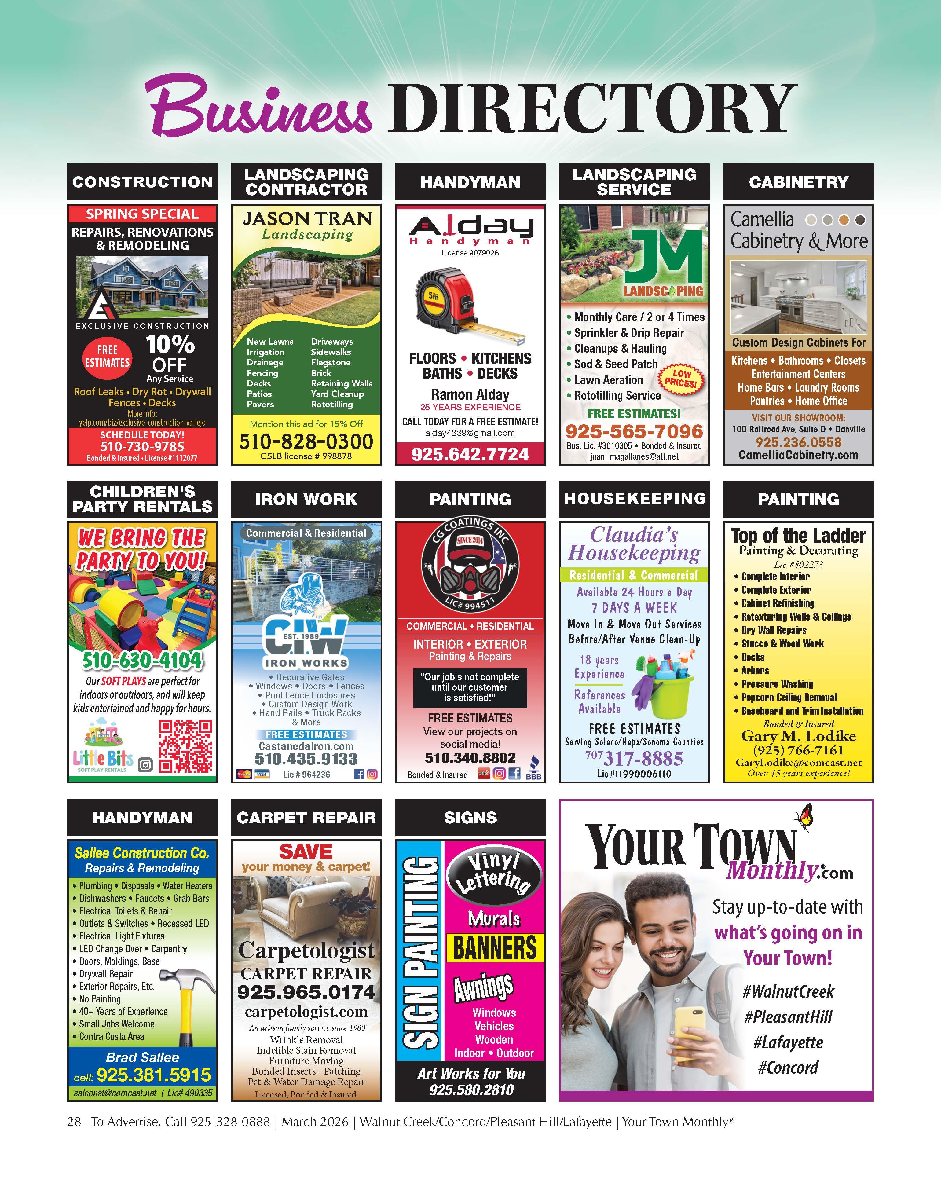 With 8 unique local editions, Your Town Monthly® is the premier direct mail magazine from the East San Francisco Bay Area to the West Sacramento Valley. Over 3.2 million are distributed to mailboxes in the Tri-Valley, Diablo Valley, Solano County and surrounding areas every year.