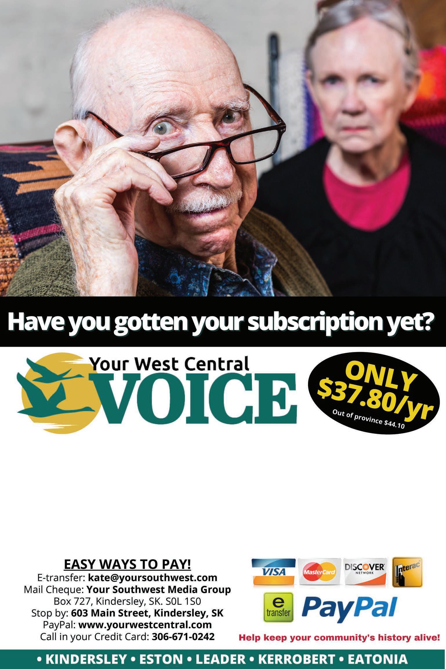 Please email your submissions to kate@yoursouthwest.com, mail to Box 727 Kindersley, SK S0L 1S0 or drop off at our office at 603 Main Street in Kindersley.
